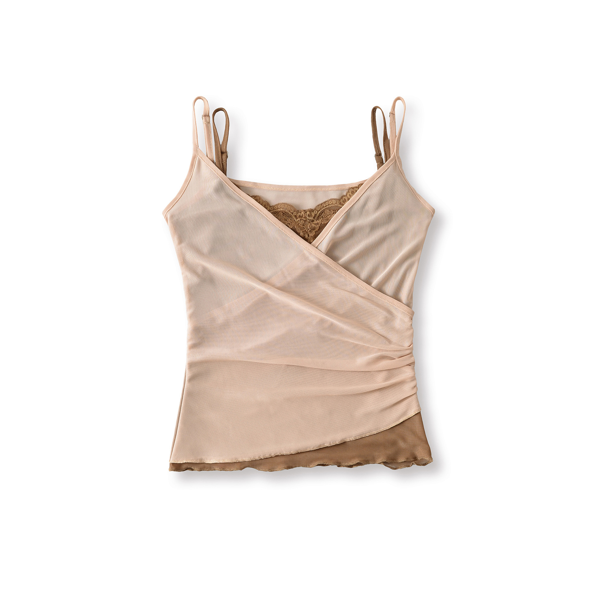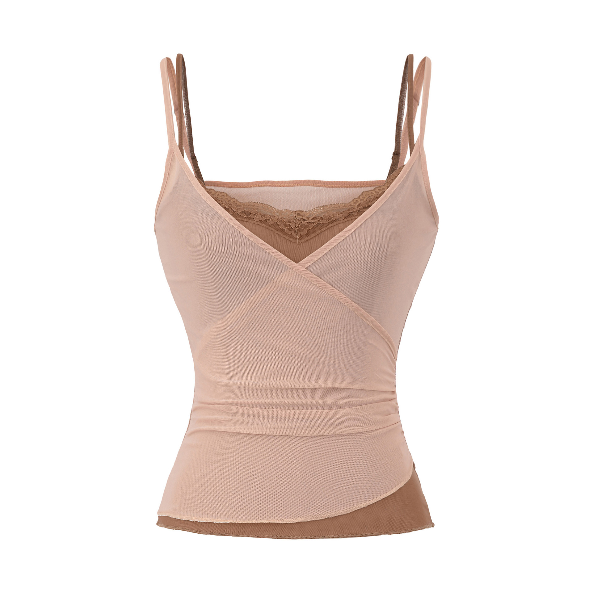 Contrast color fake two-piece lace splicing mesh camisole