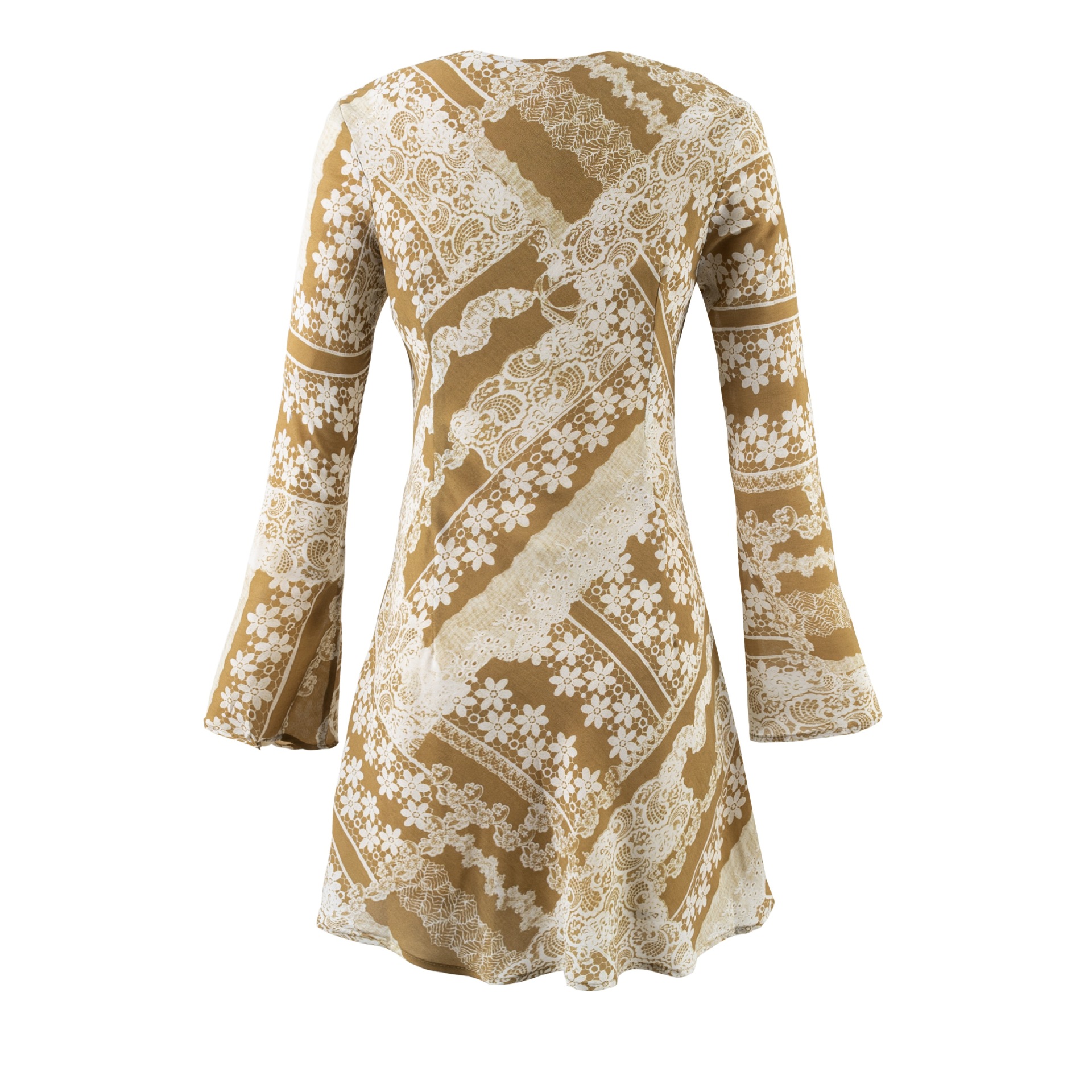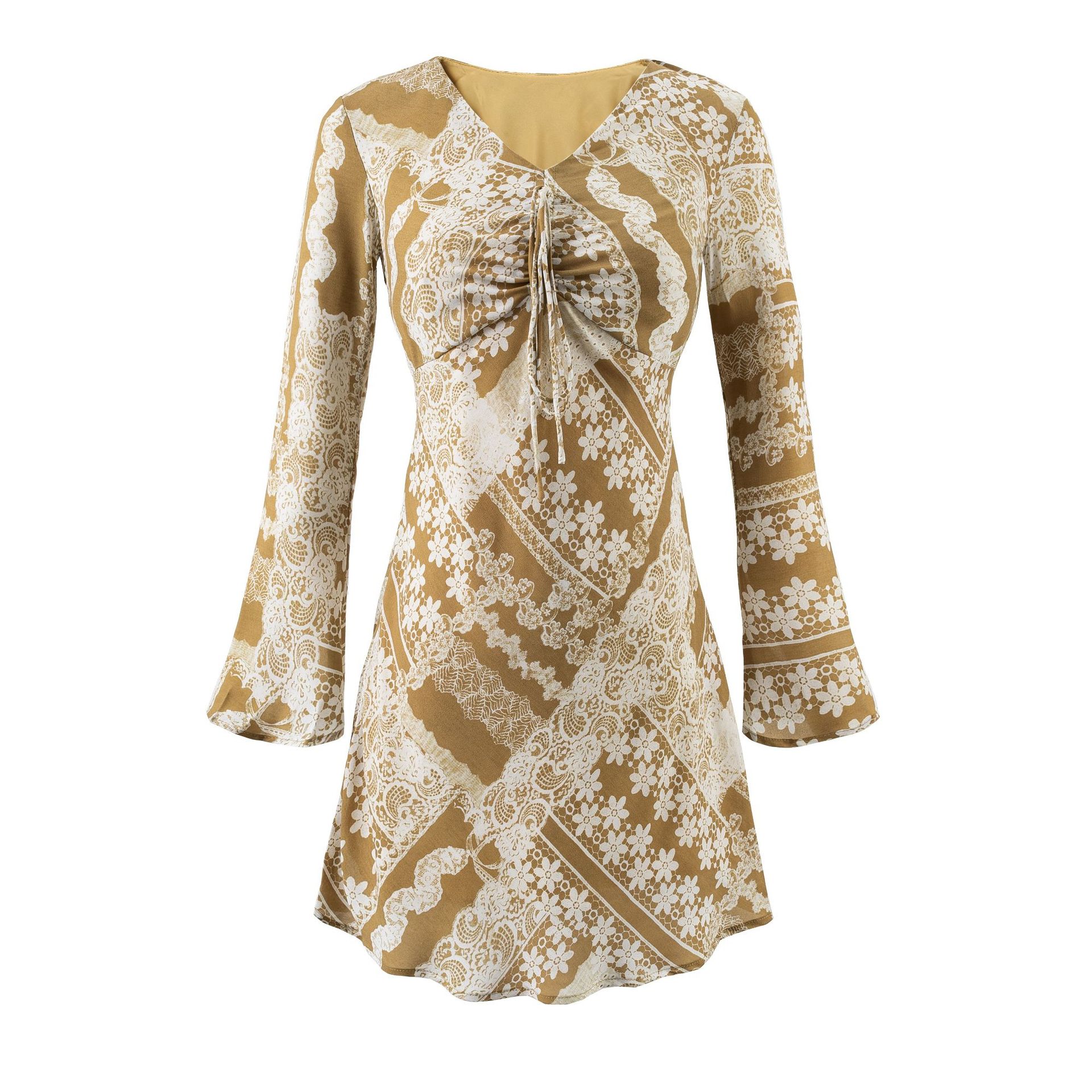 Retro floral print V-neck flared long-sleeved dress
