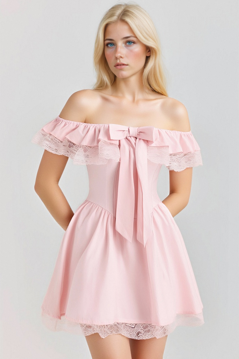 One-shoulder flying sleeves and lace bow waist puffy princess dress