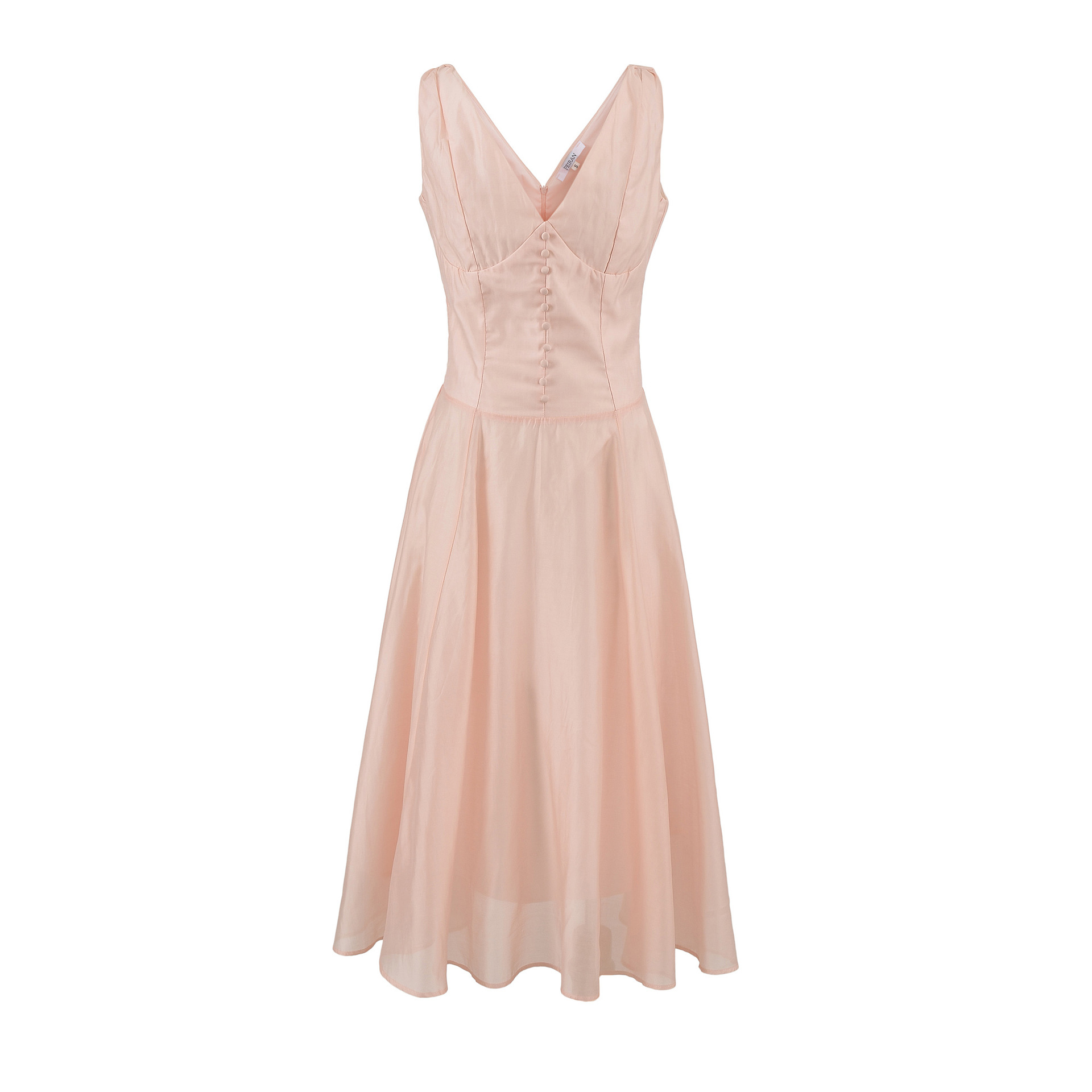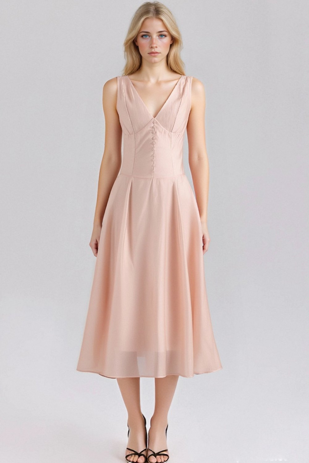 Sweet pink one-row button sexy V-neck waist camisole dress