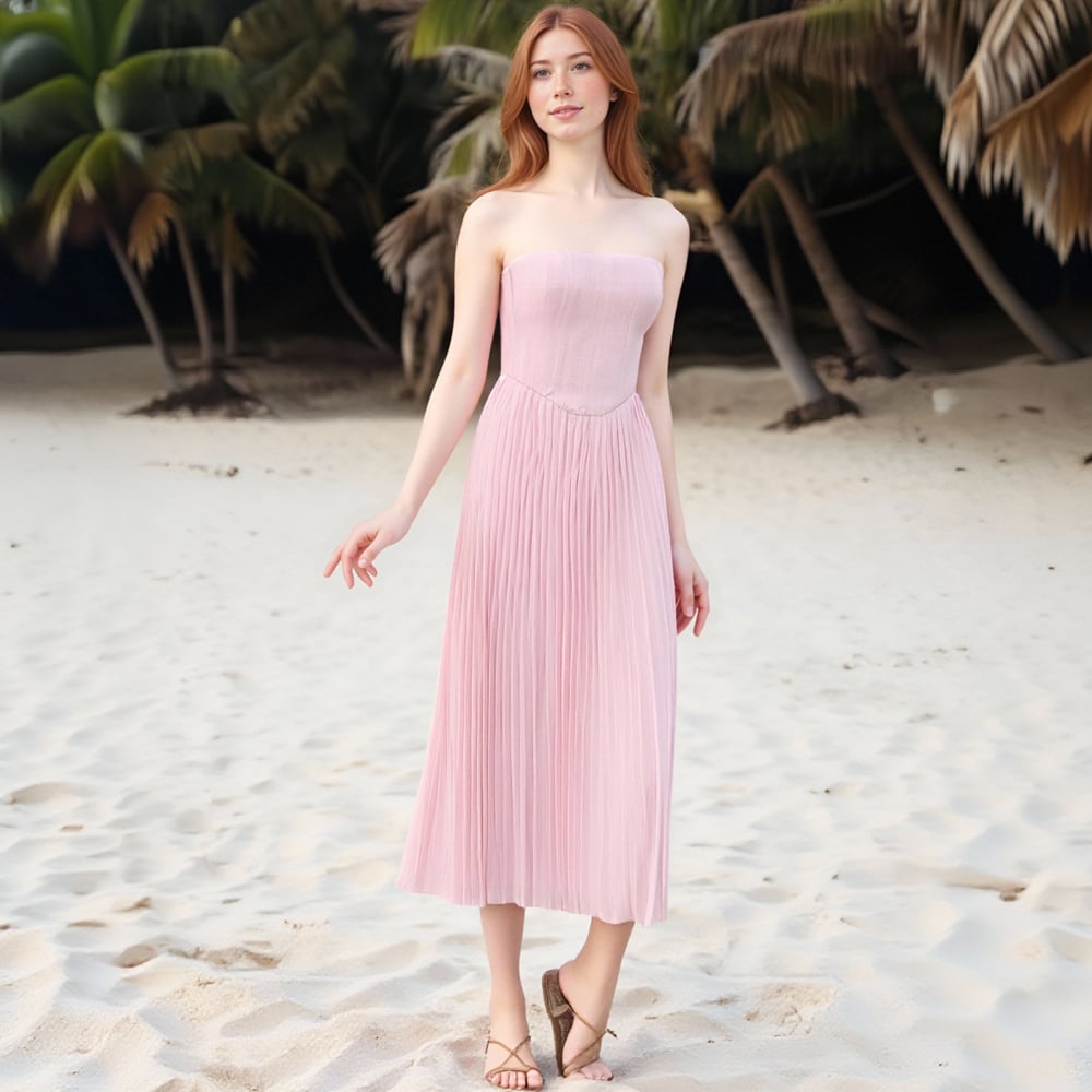 Sexy and elegant tube top maxi dress holiday waist halter back pleated dress