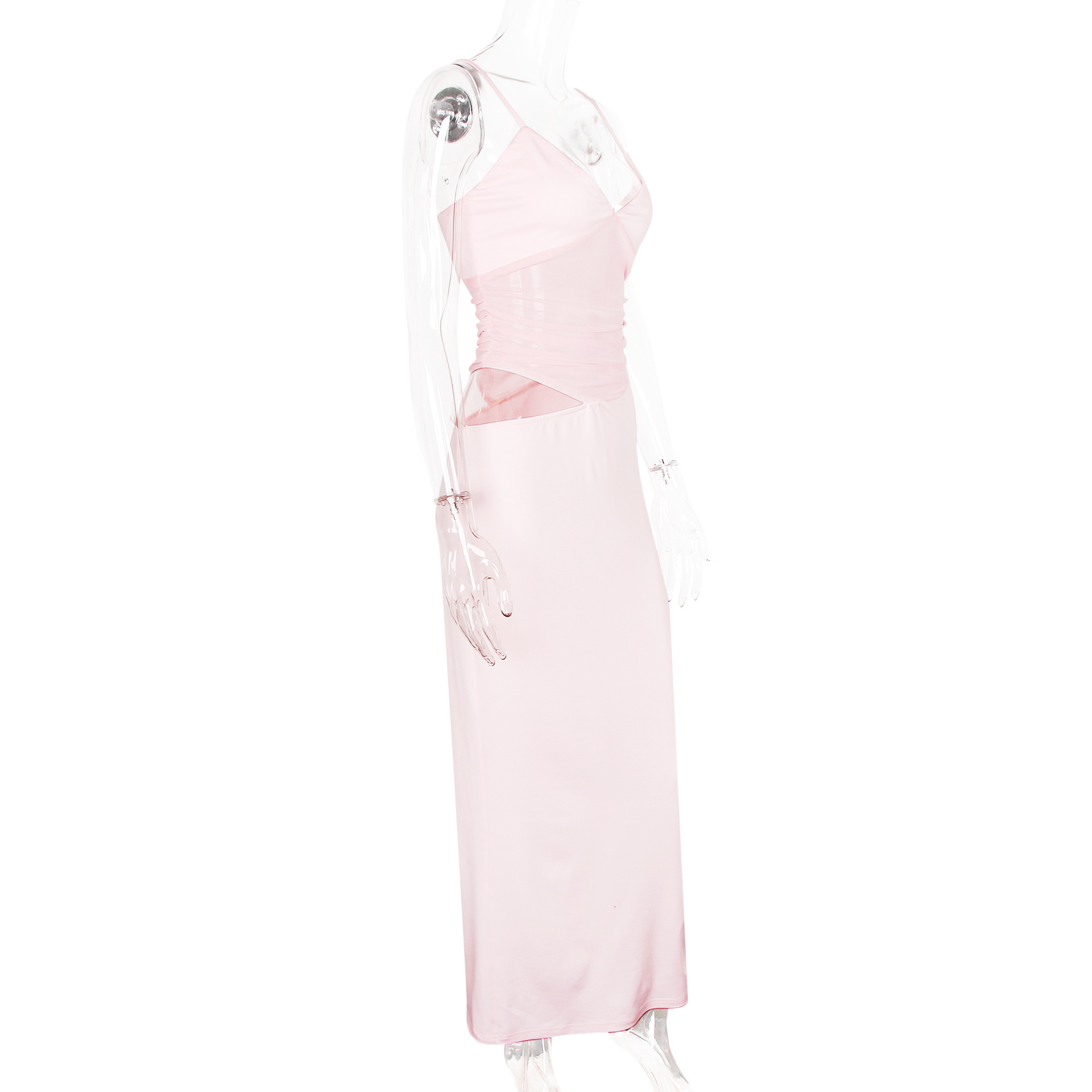 Sexy mesh hollow suspender dress slim fit backpack hip slit high-end dress long skirt