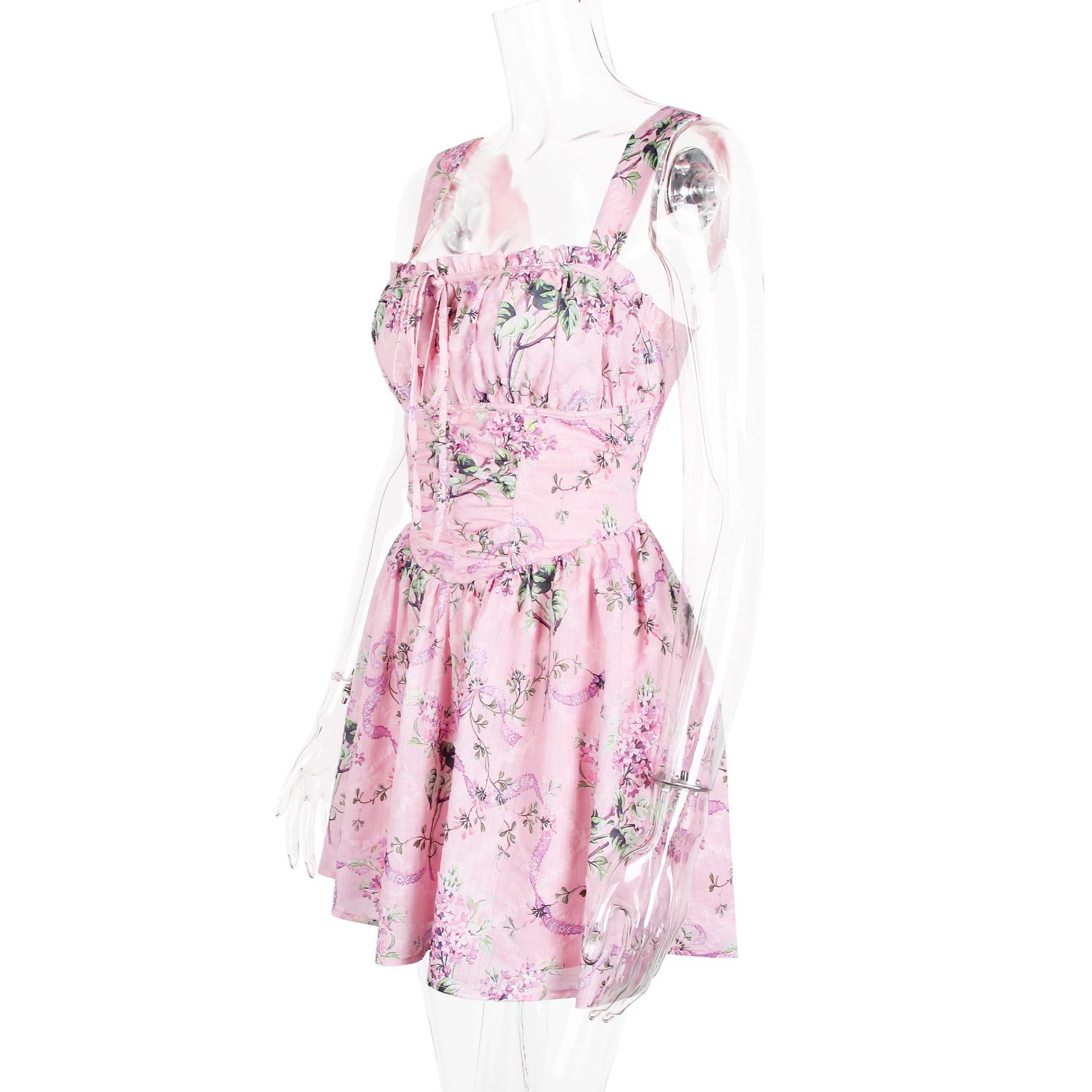 Printed suspender skirt dress women's tutu skirt slim backless hot girl floral skirt