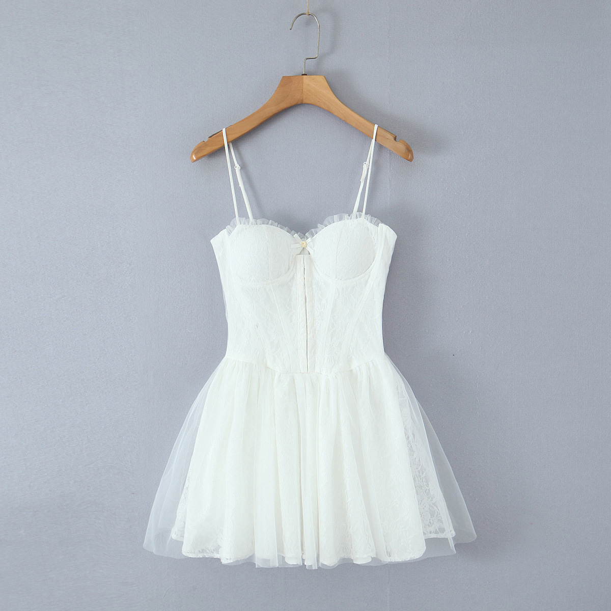 Lace jacquard suspender wrap chest tie waist puffy dress