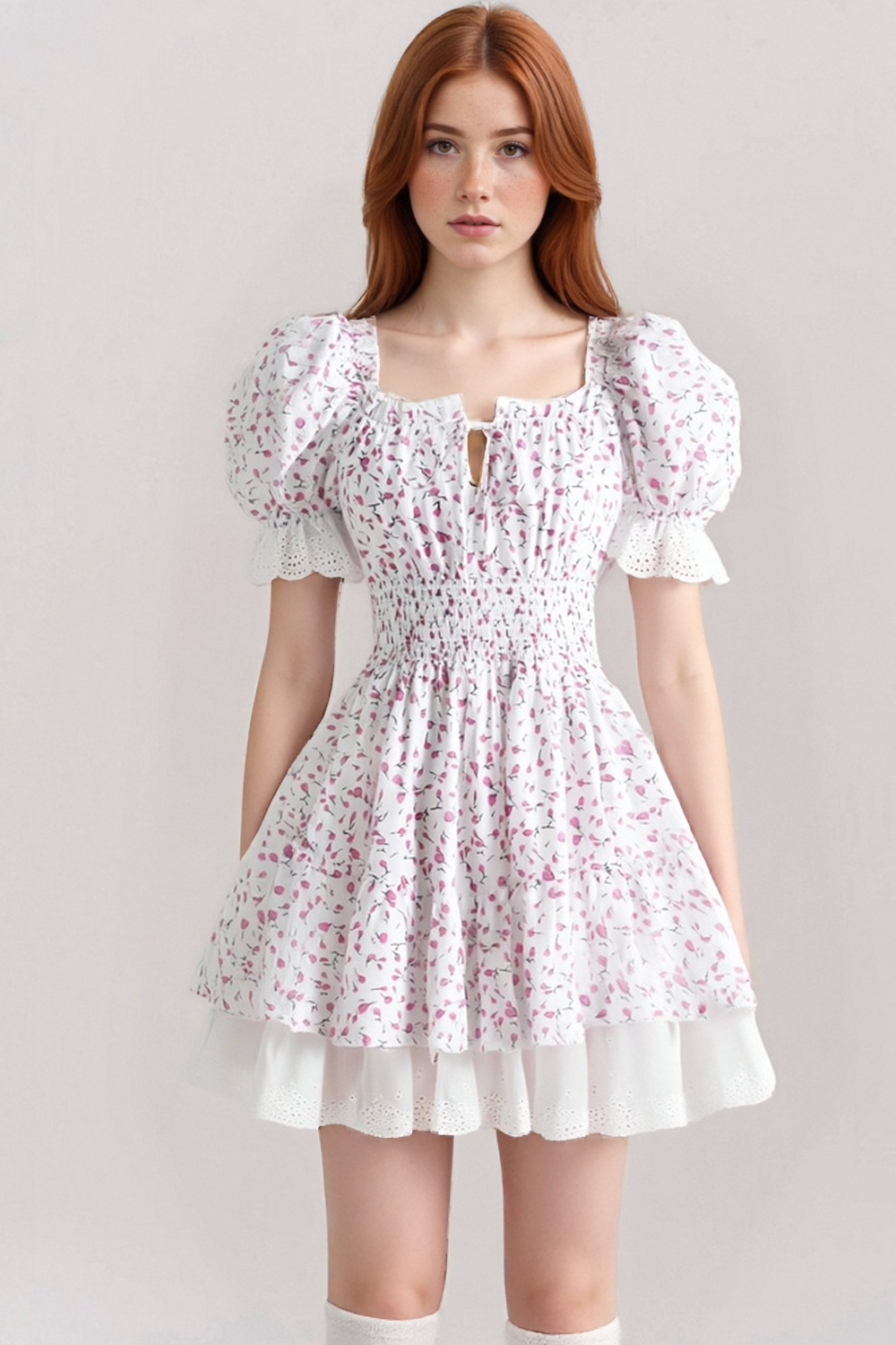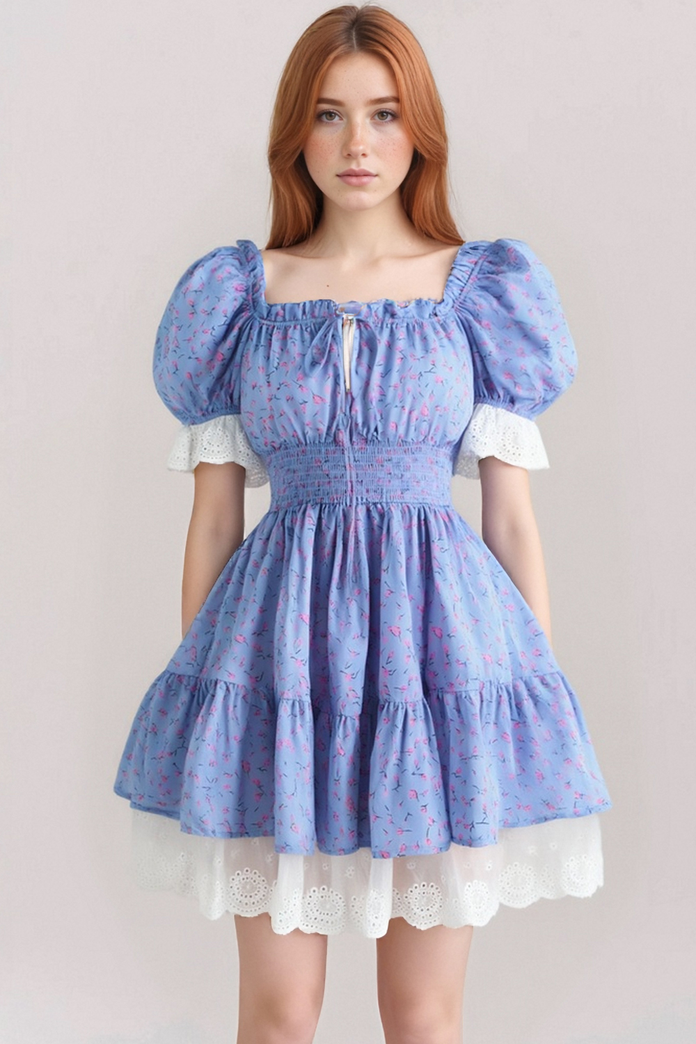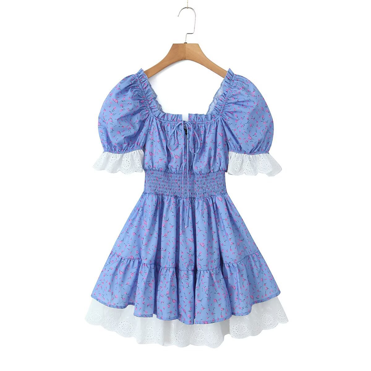 Retro Floral Square Neck Sexy Lace Splicing Elastic Waist Tutu Dress