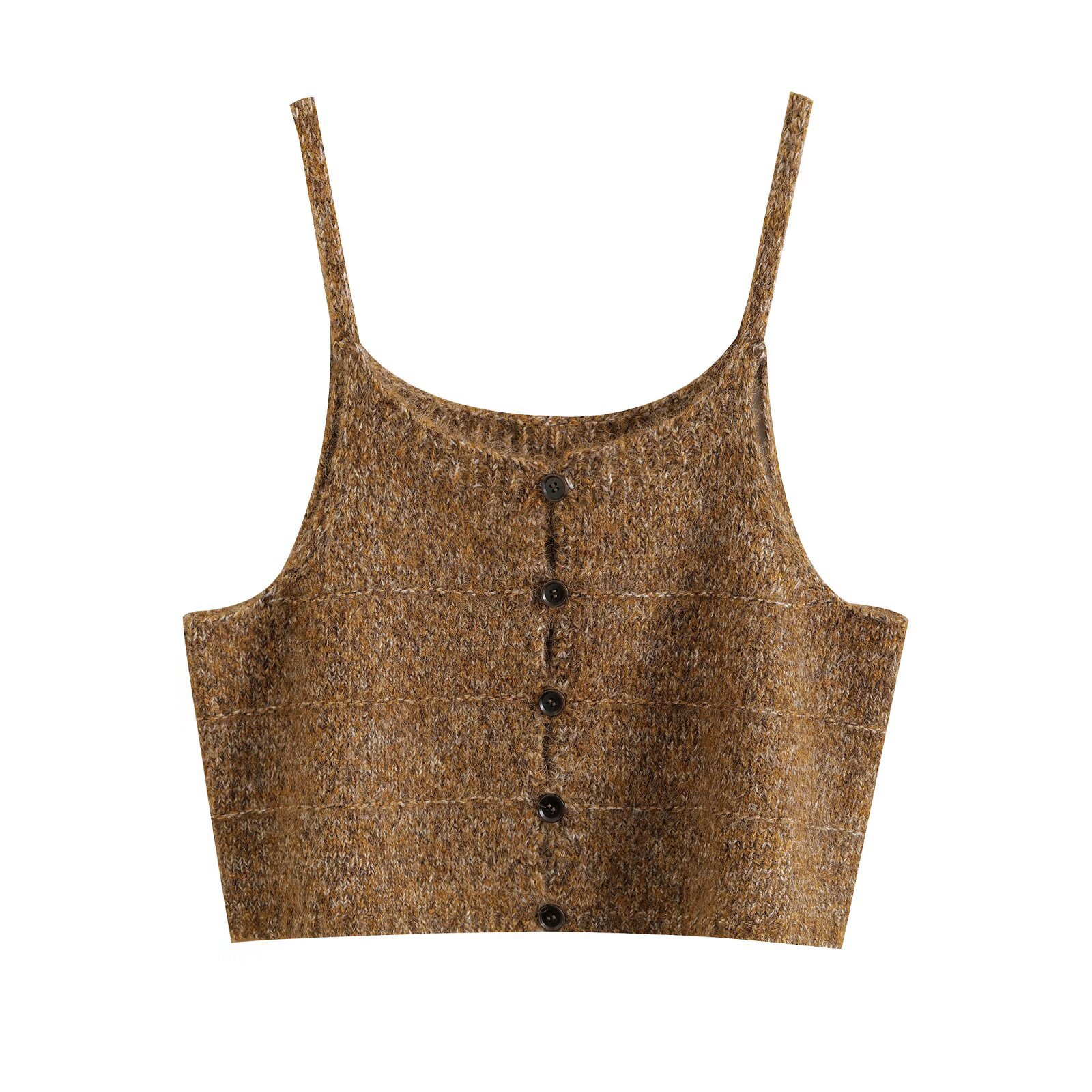 Simple and elegant casual floral line layered single-breasted camisole knitted vest