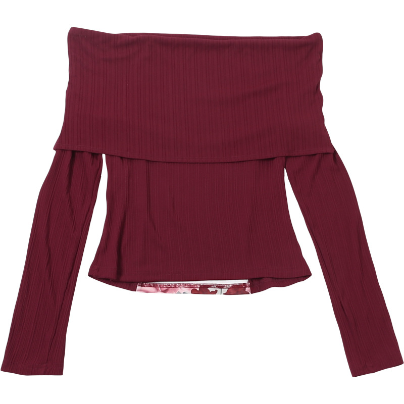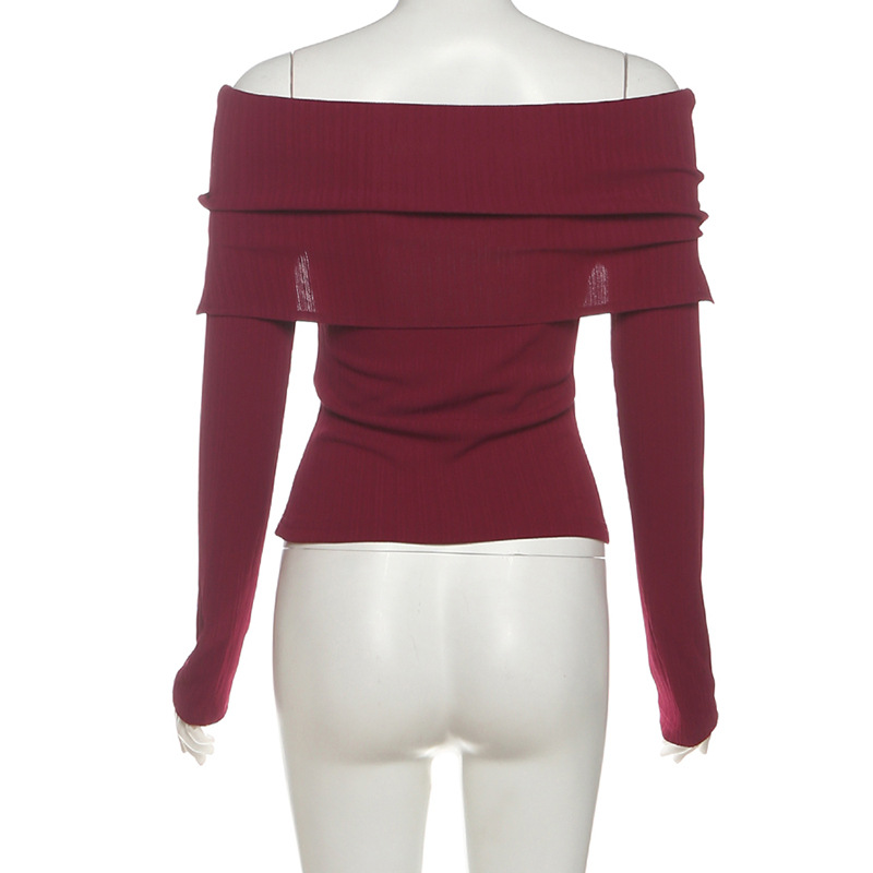 Fashionable and versatile plant print one-shoulder long-sleeved T-shirt top