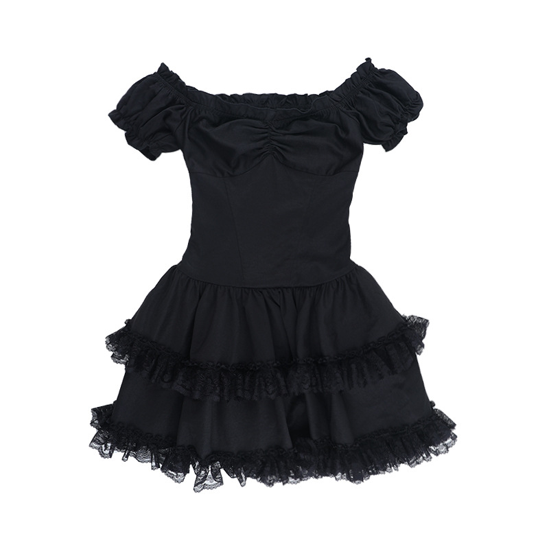 One-shoulder two-wear dress subculture Gothic style sexy hot girl slim short skirt