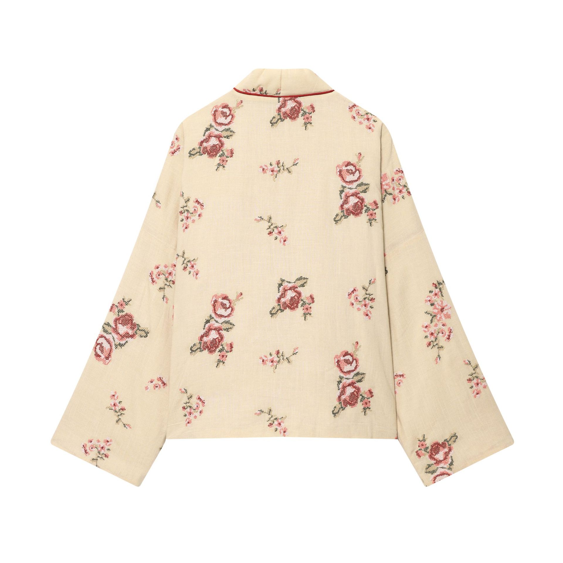 Fashionable flower embroidered V-neck long-sleeved cotton jacket