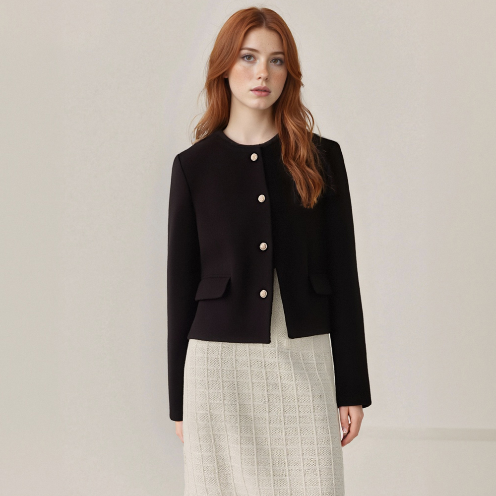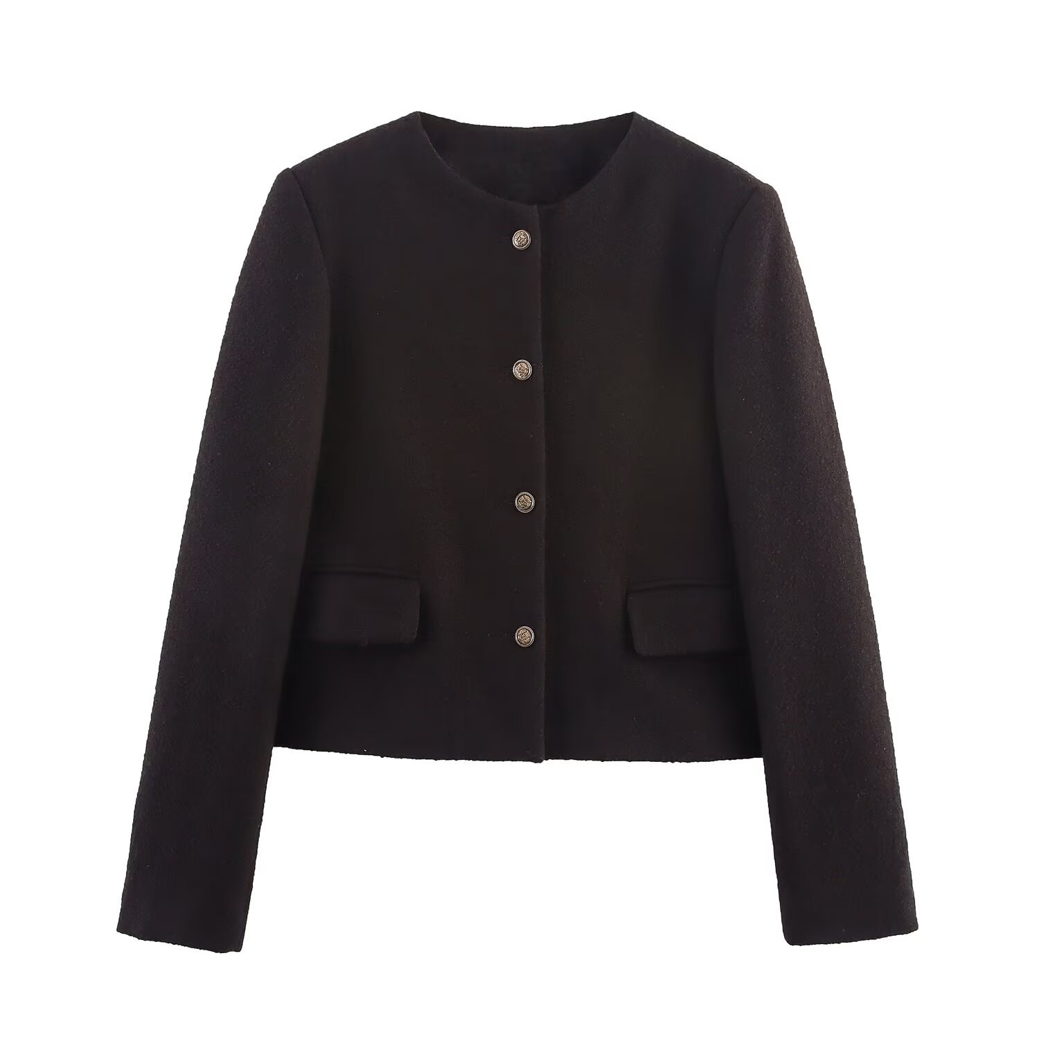 round neck short woolen coat