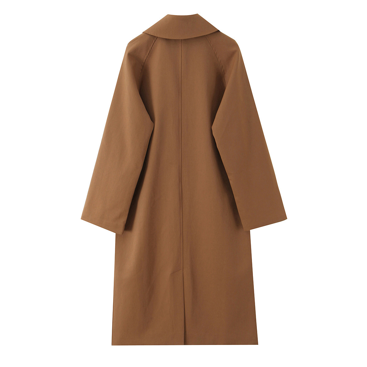 Retro style lapel single-breasted plaid lining contrast color long sleeve long trench coat