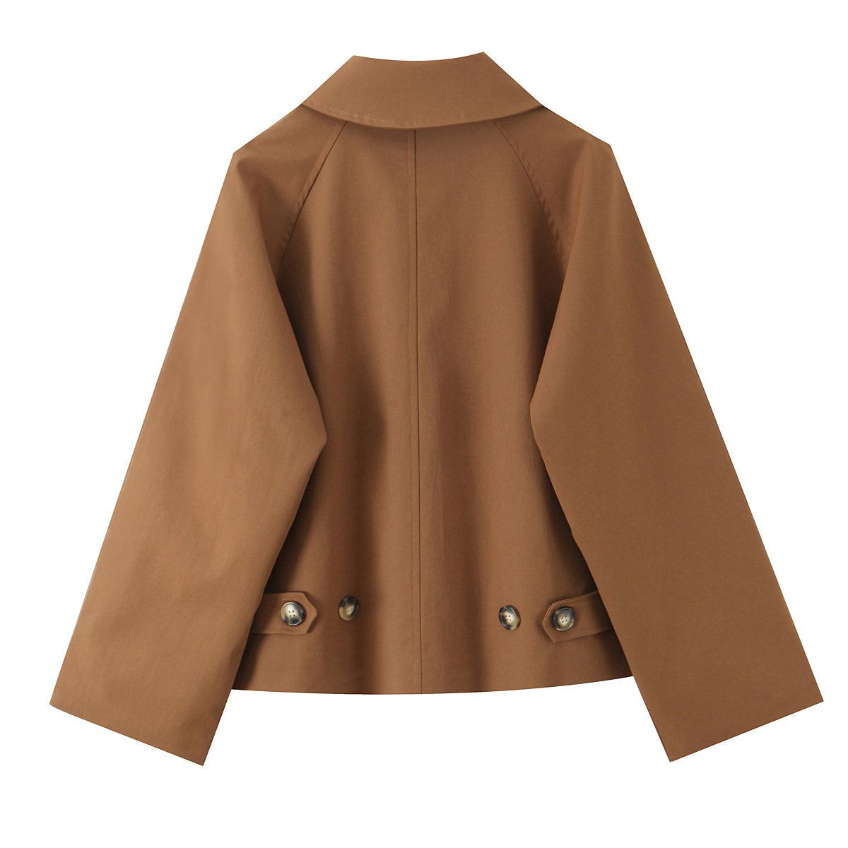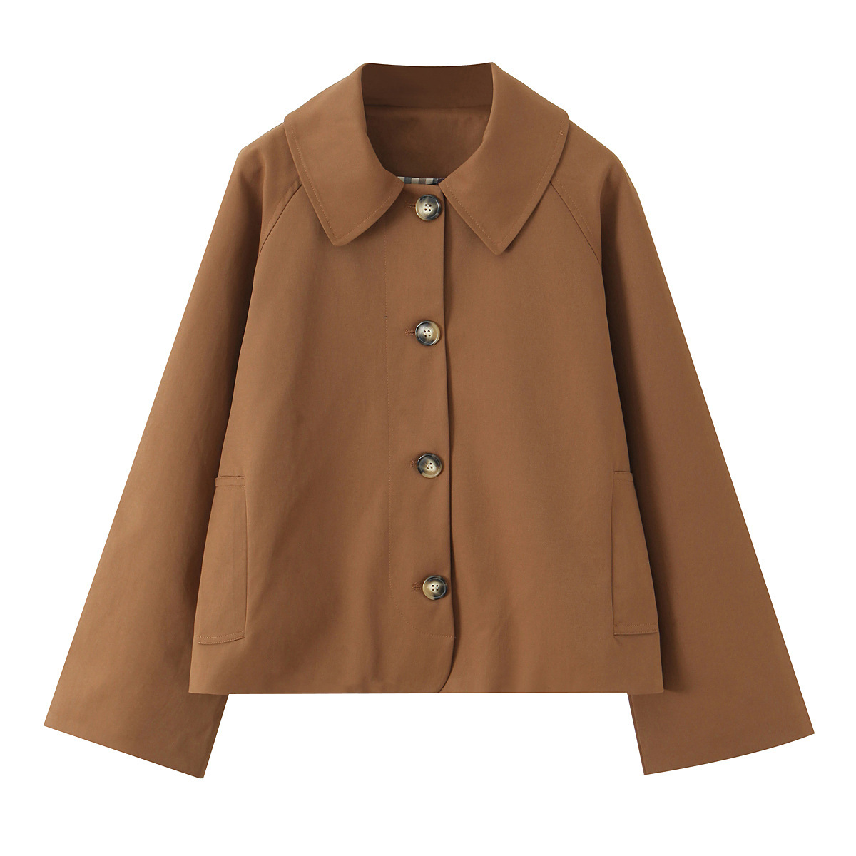 Retro style lapel single-breasted plaid lining contrast color long-sleeved short trench coat