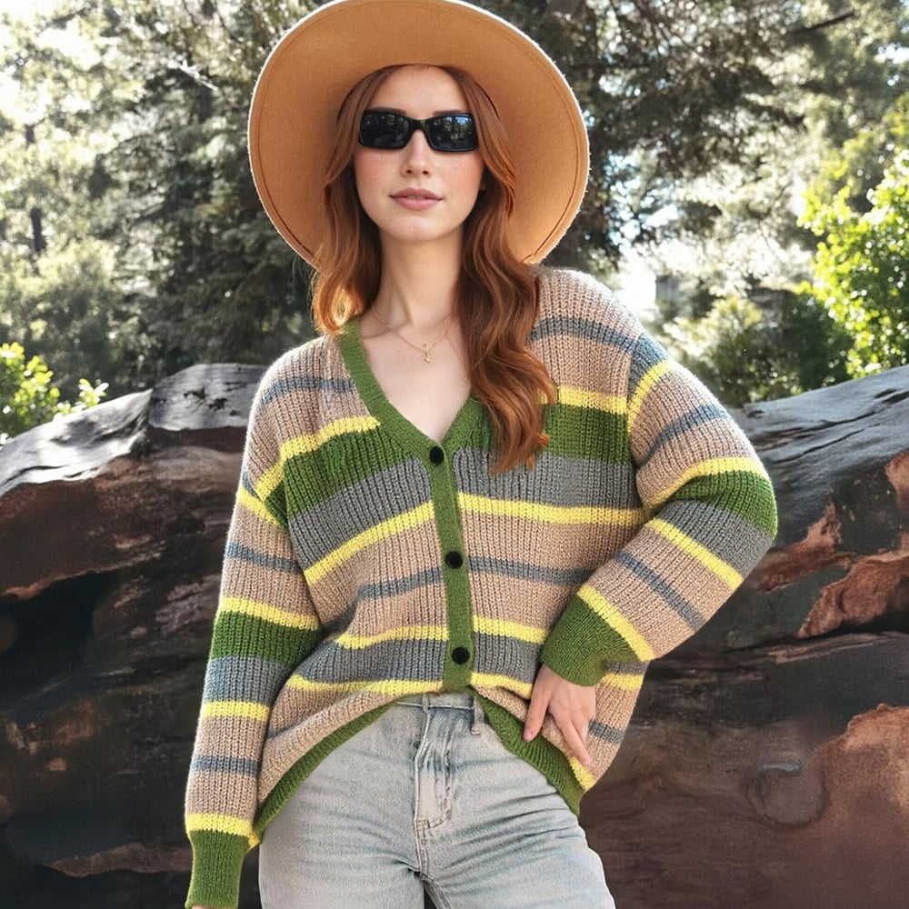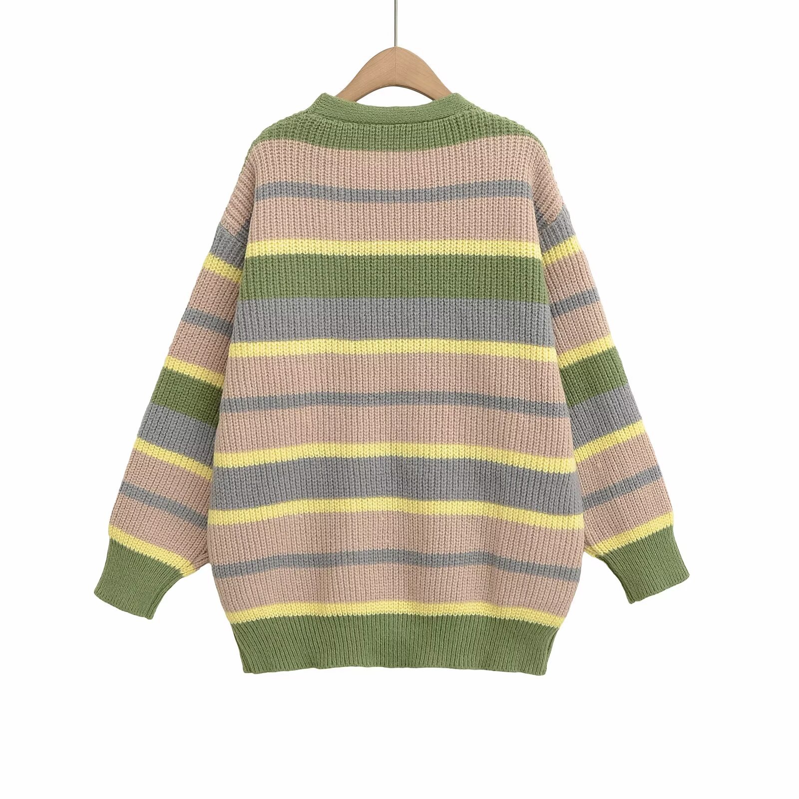 Fashionable and simple loose contrast color long-sleeved knitted cardigan jacket