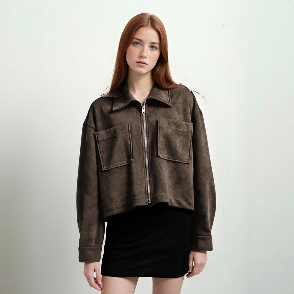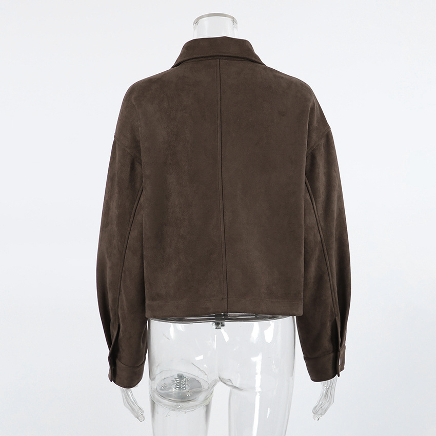 Long-sleeved suede jacket brown 2025 new small suit zipper top jacket