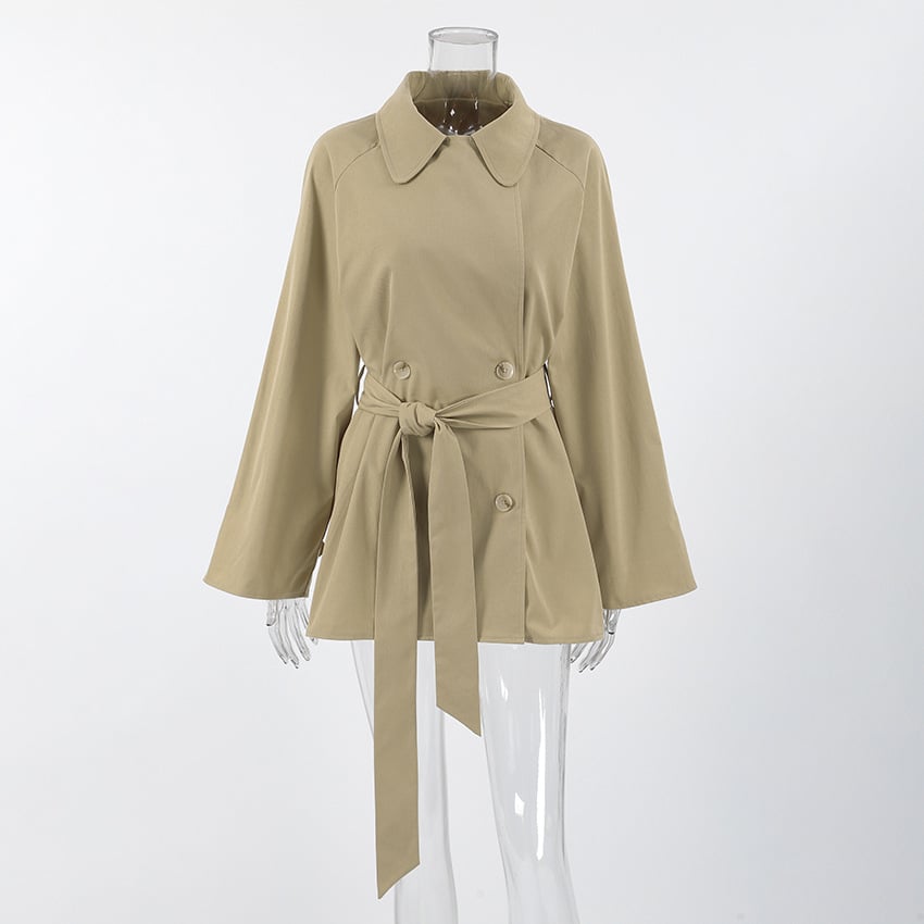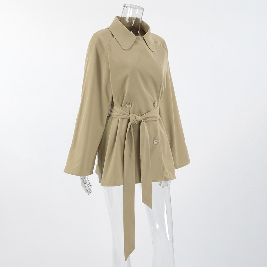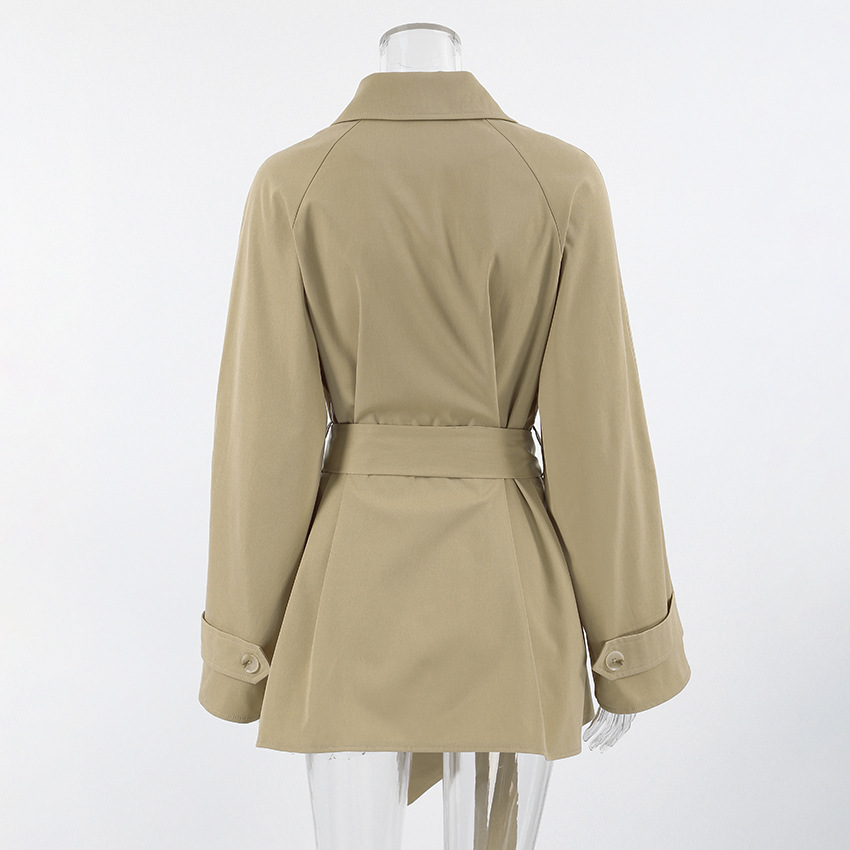 Women's design trench coat mid-length khaki jacket lace-up autumn long-sleeved coat