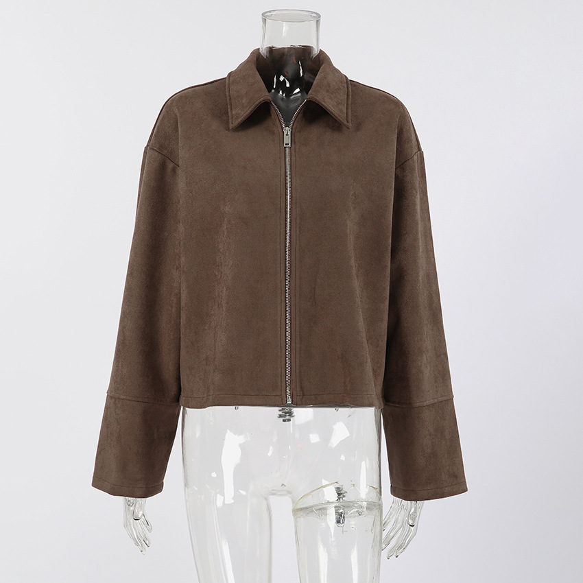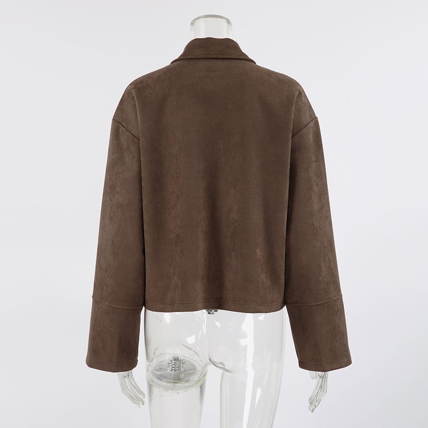 Vintage brown suede lapel loose coat