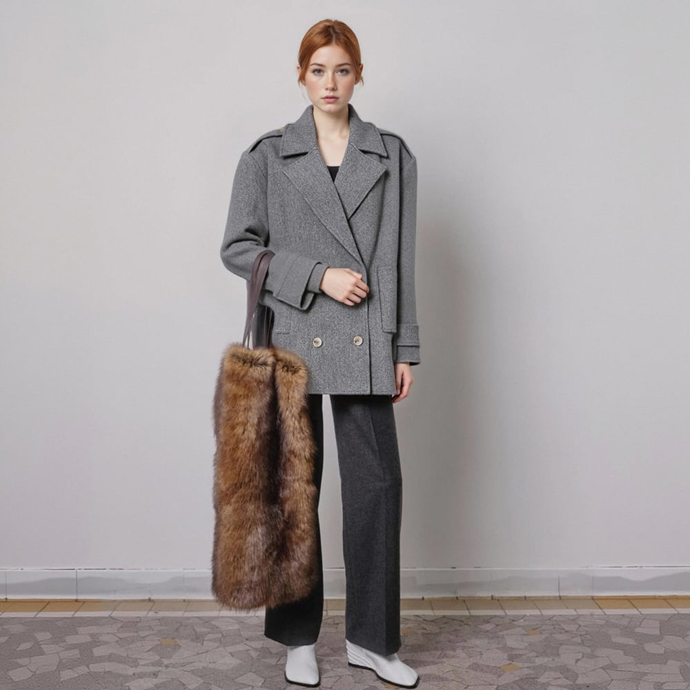 Casual lazy style fashionable versatile mid-length woolen women's suit jacket