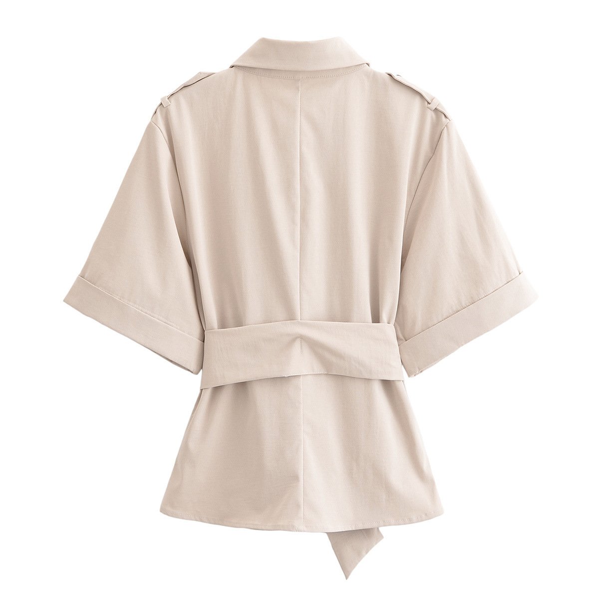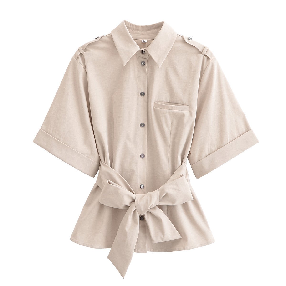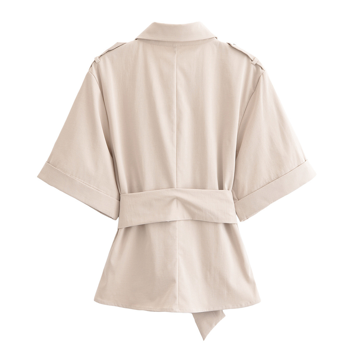 Street Fashion Casual Short Sleeve Shirt with Belt