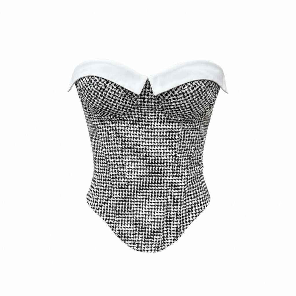 Retro Plaid Herringbone Diamond Waist Cotton Vest Contrast Color Top