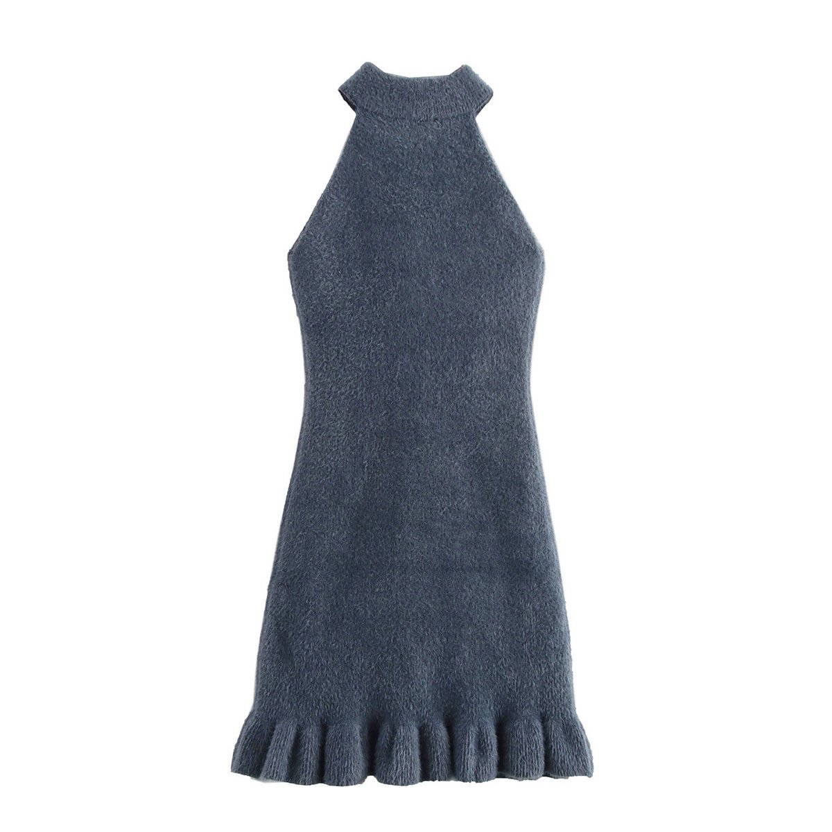 Beaded faux fur-effect halterneck knitted dress