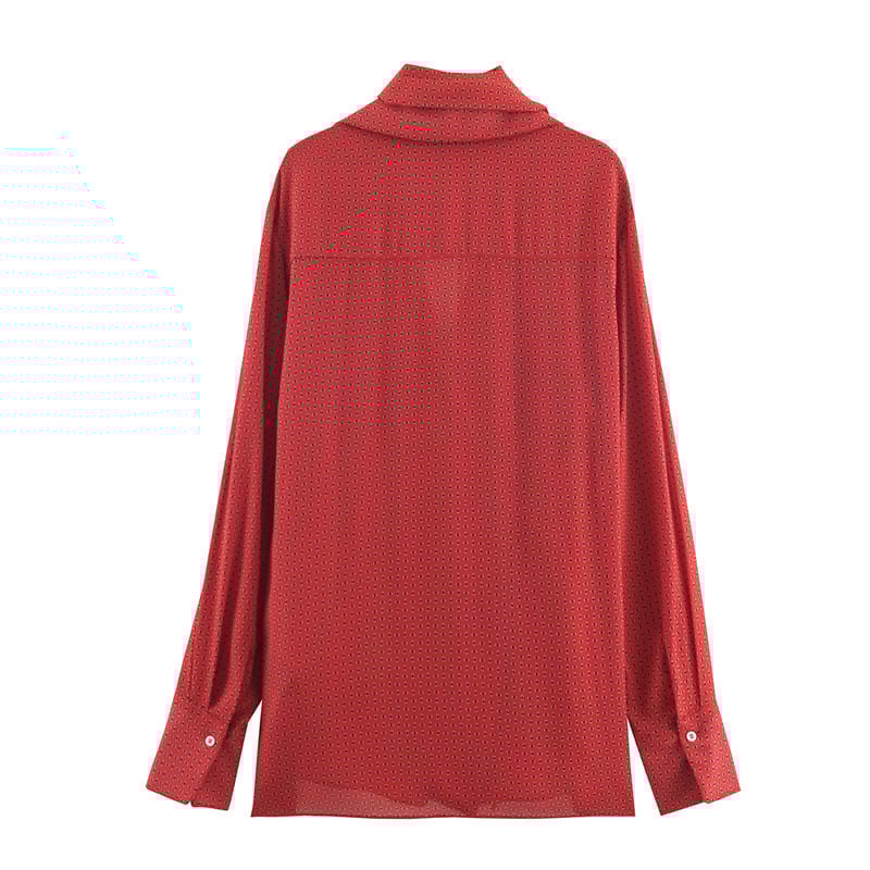 Fashionable and casual loose-fitting printed bow-decorated shirt