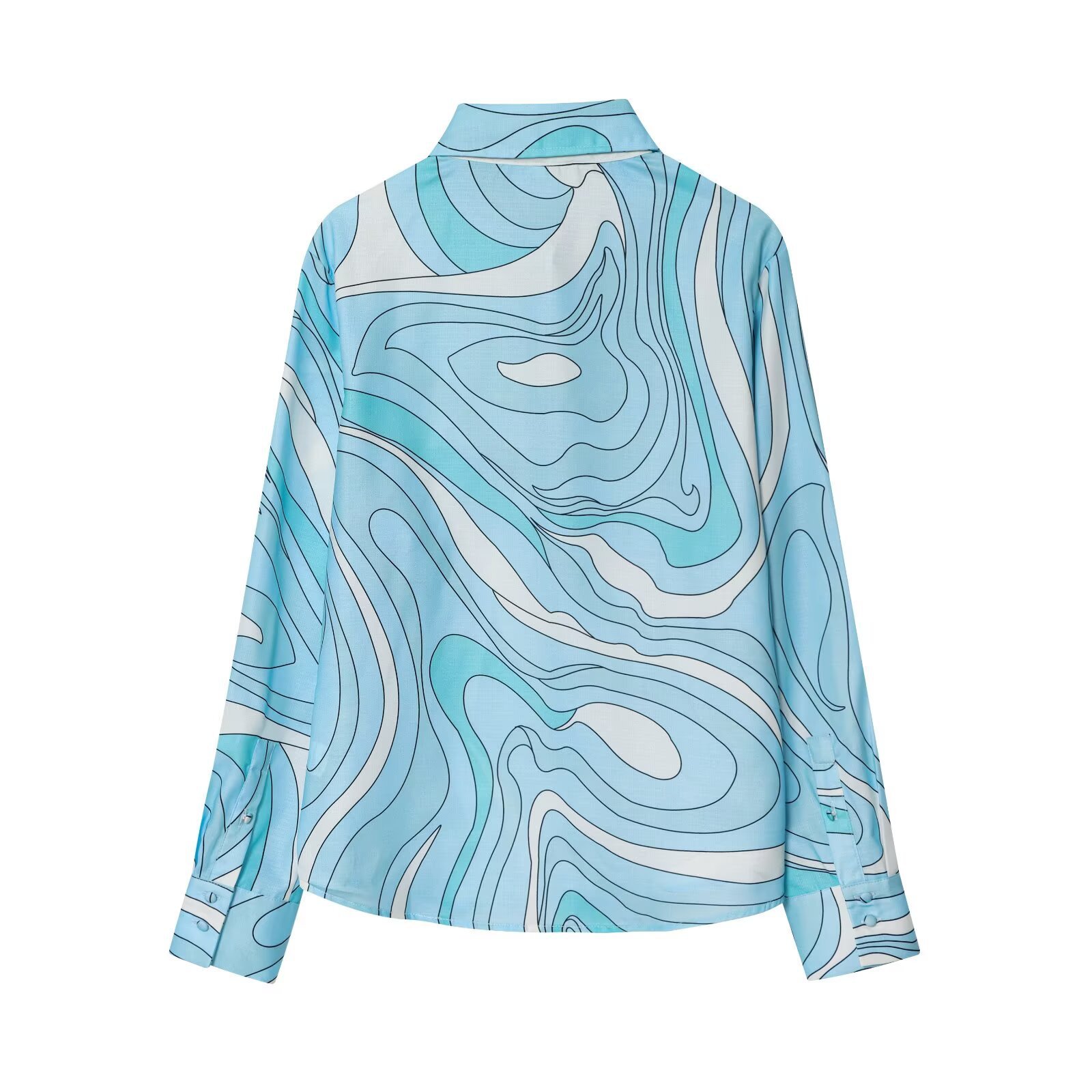 Fashionable and elegant women's wholesale printed buttoned long-sleeved shirt