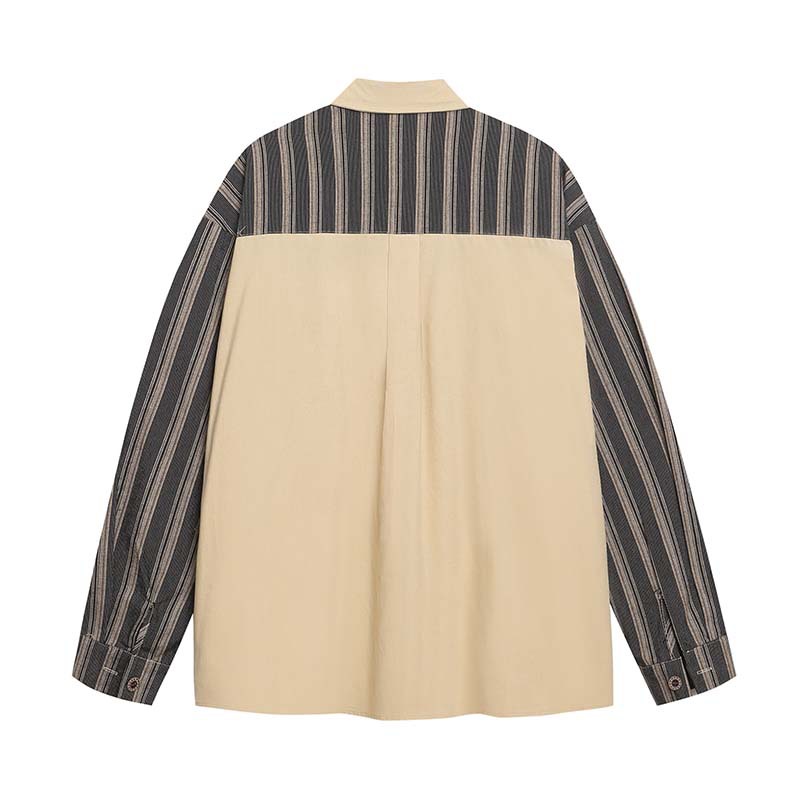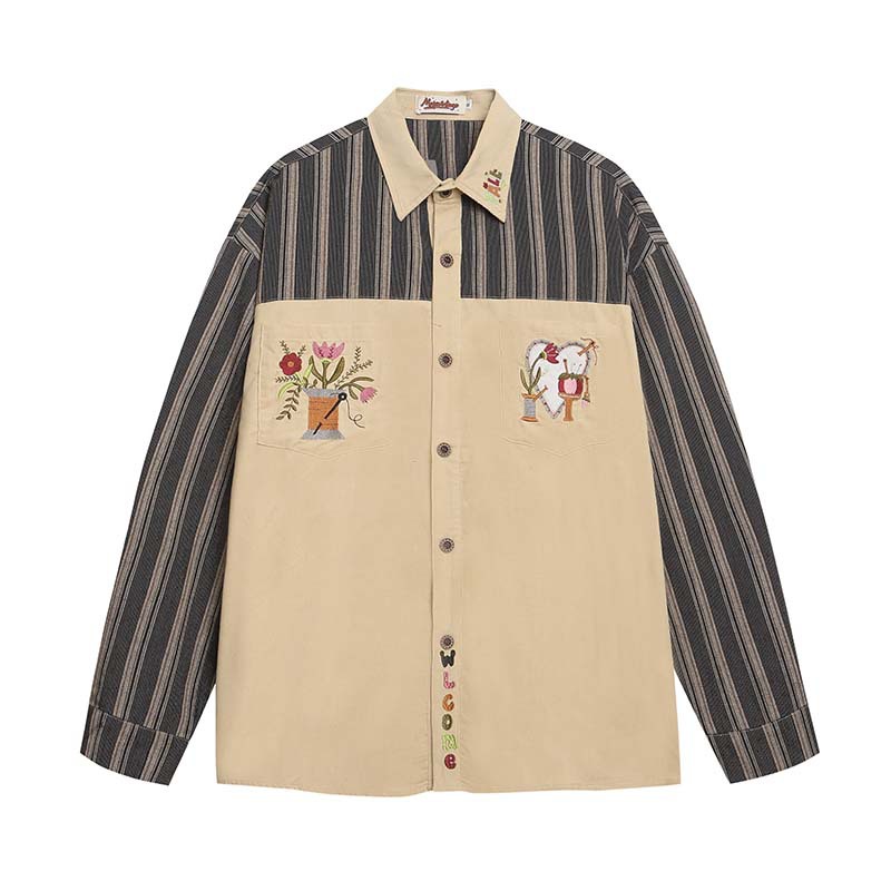 Floral and Plant Embroidery Striped Lapel Long-Sleeved Shirt