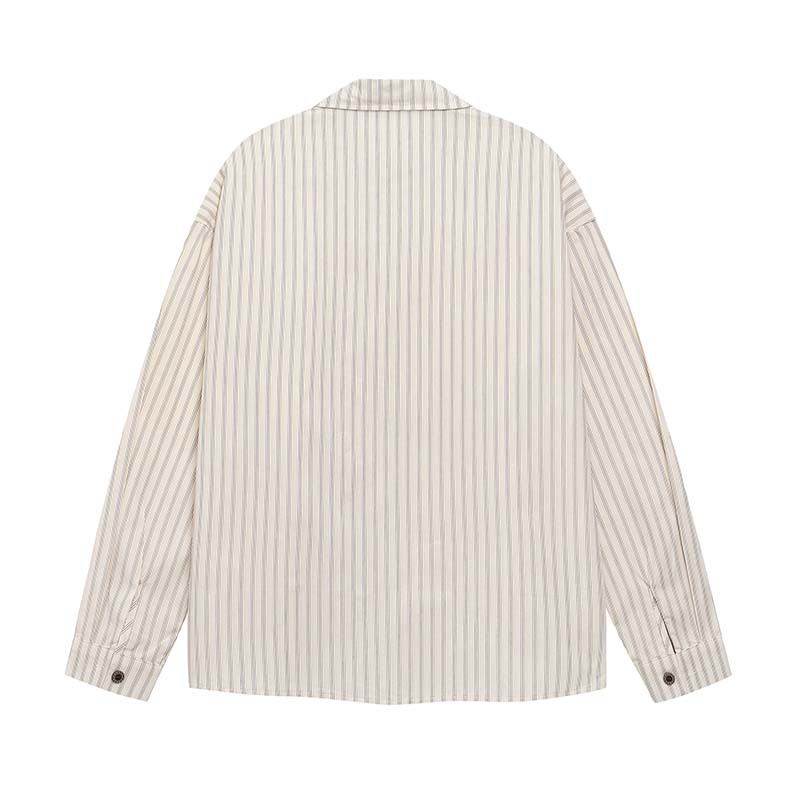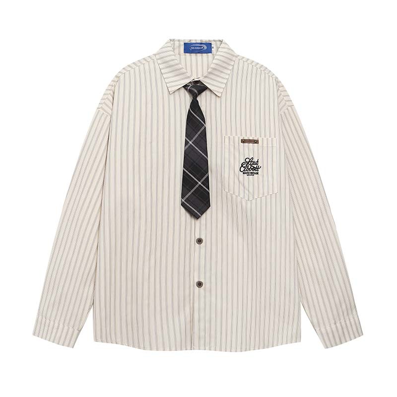 Letter Embroidered Vertical Stripes Long Sleeve Shirt with Tie