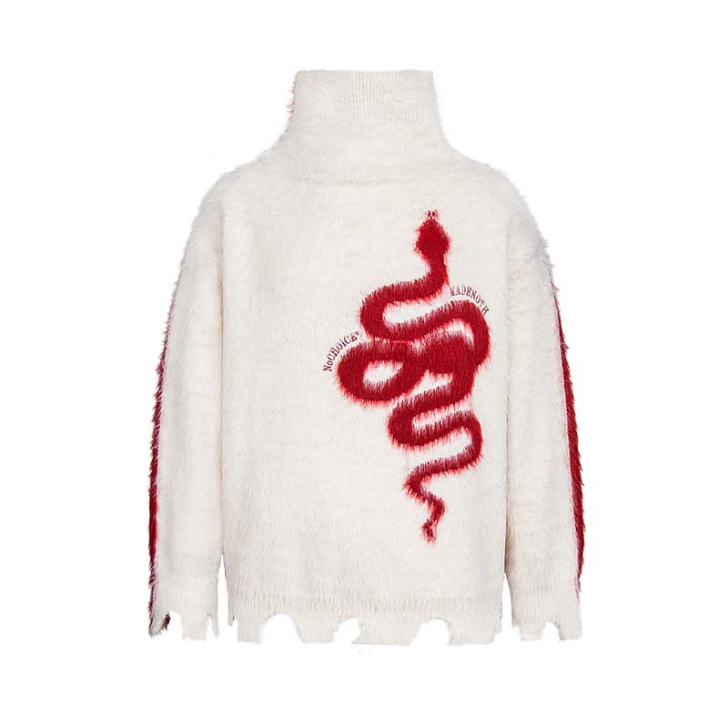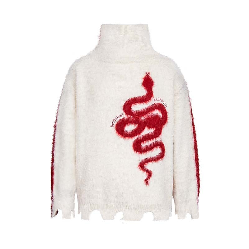 Chinese Zodiac Snake Jacquard Contrast Color Stitching Turtleneck Sweater