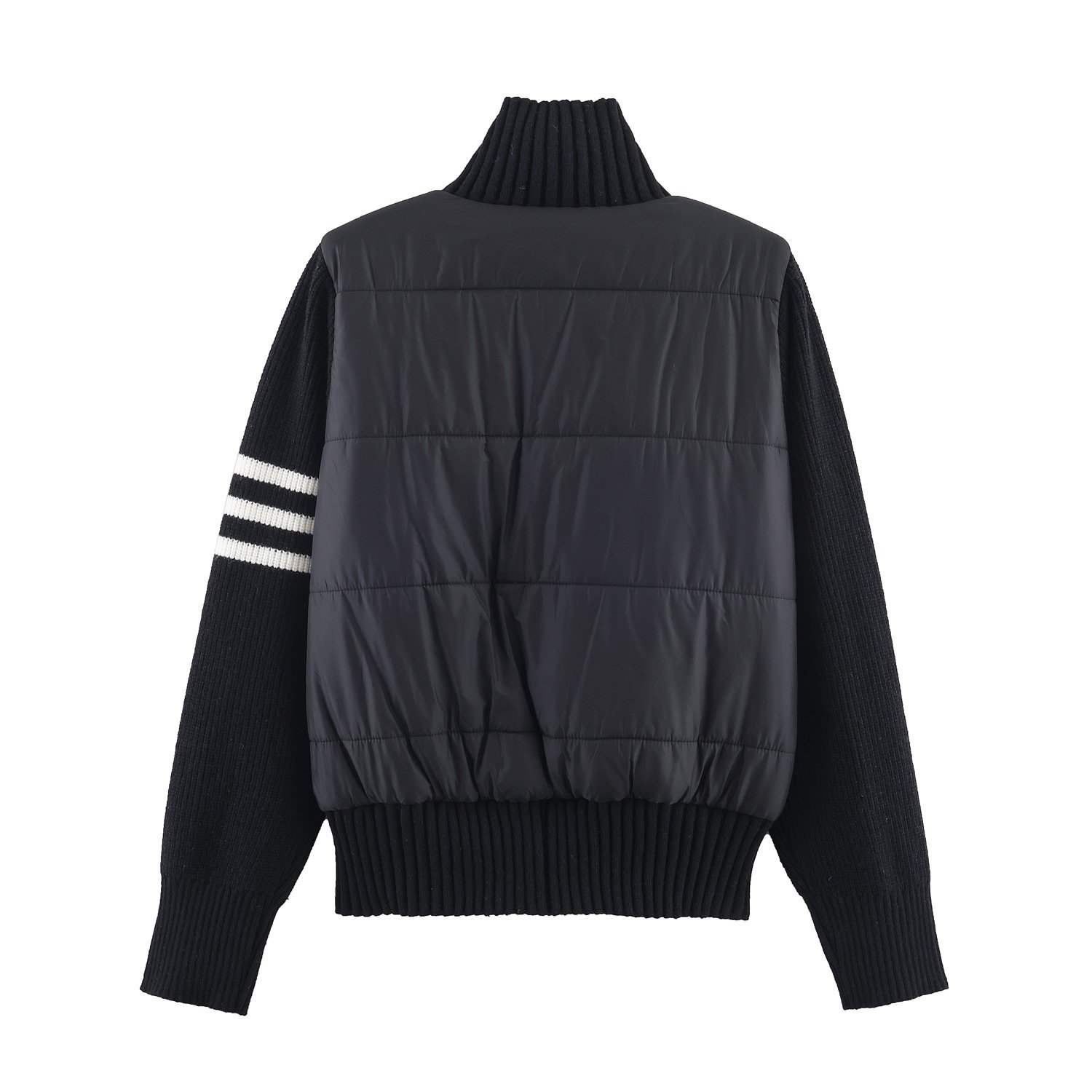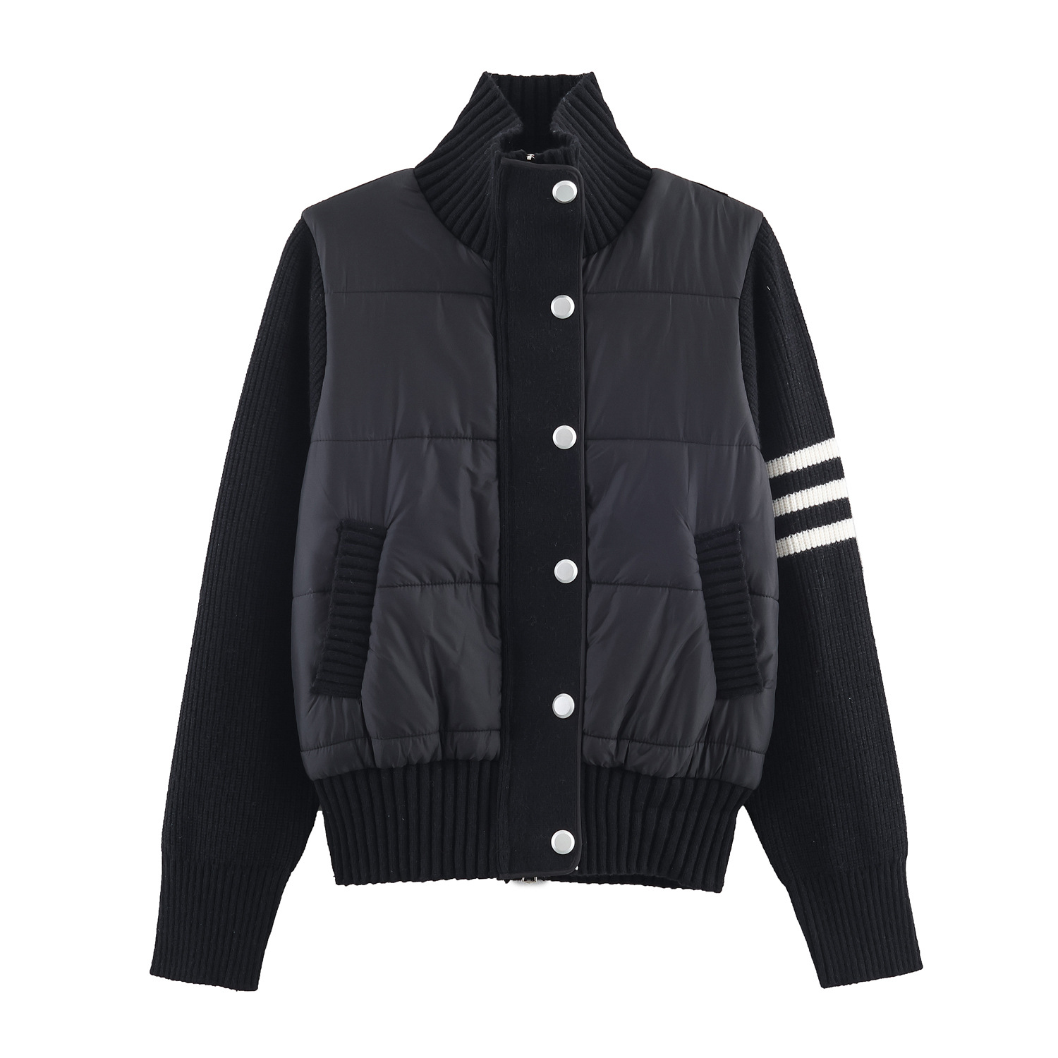 Fashionable and casual loose single-breasted knitted patchwork jacket