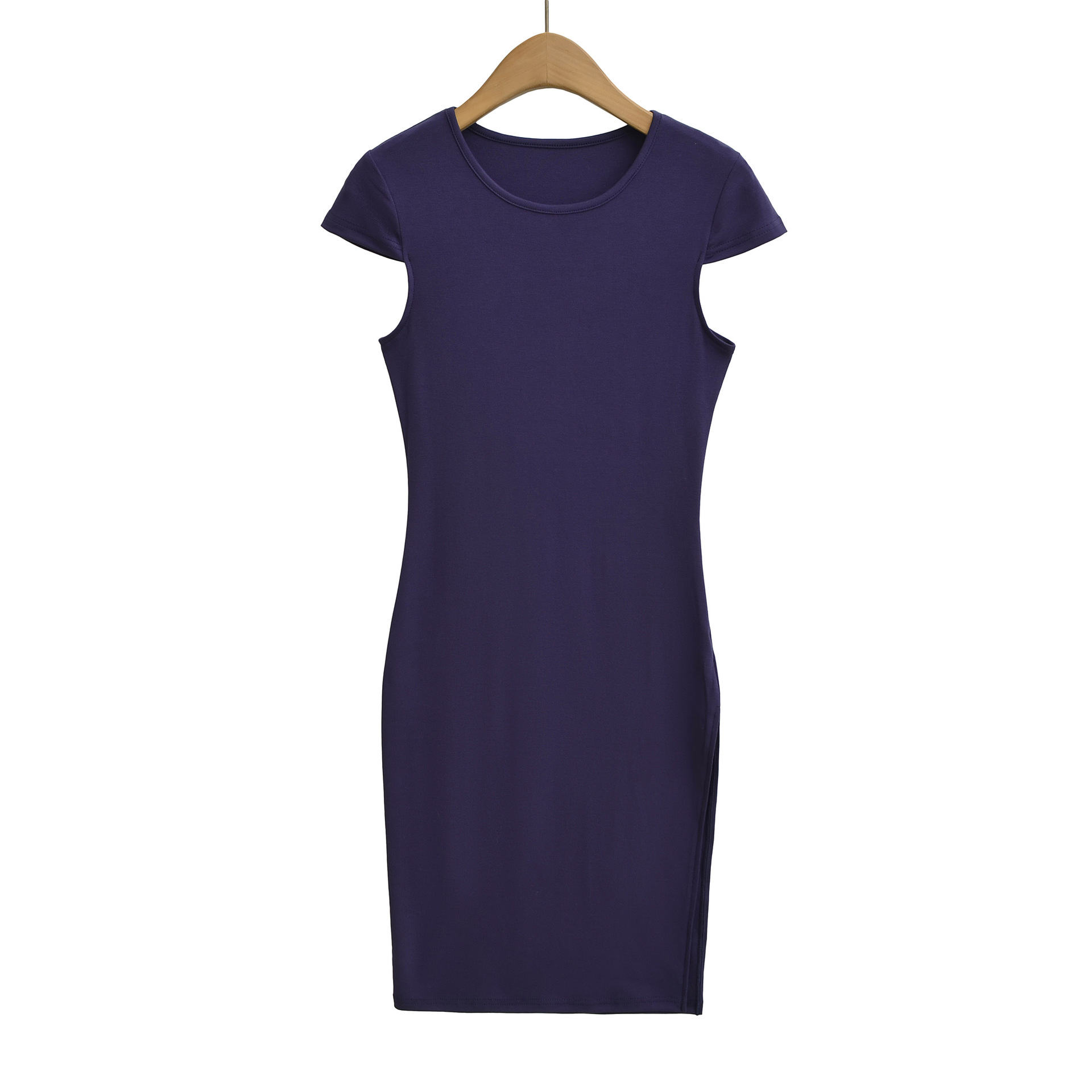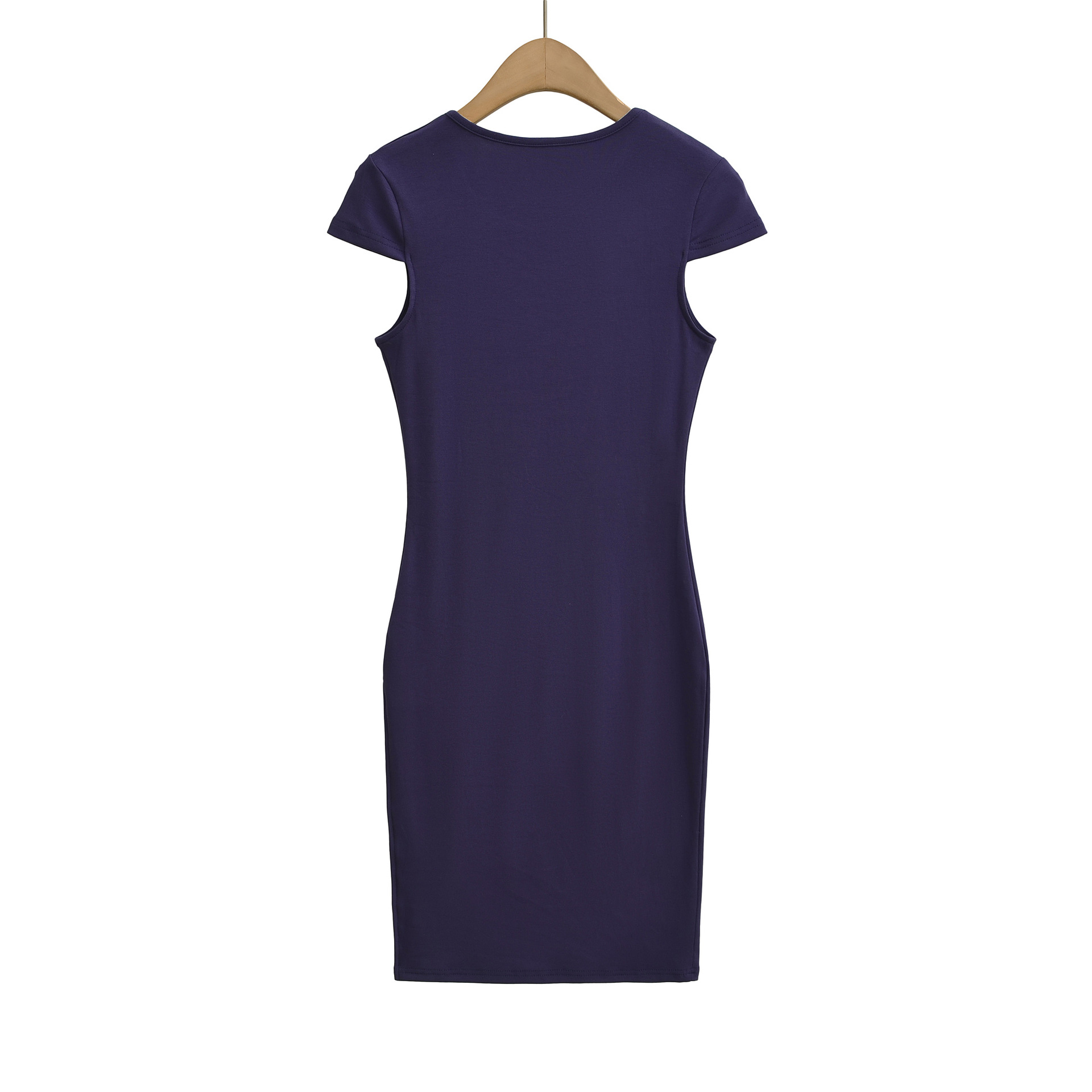 Sexy high-slit round-neck shoulder-length slim-fit hip skirt dress