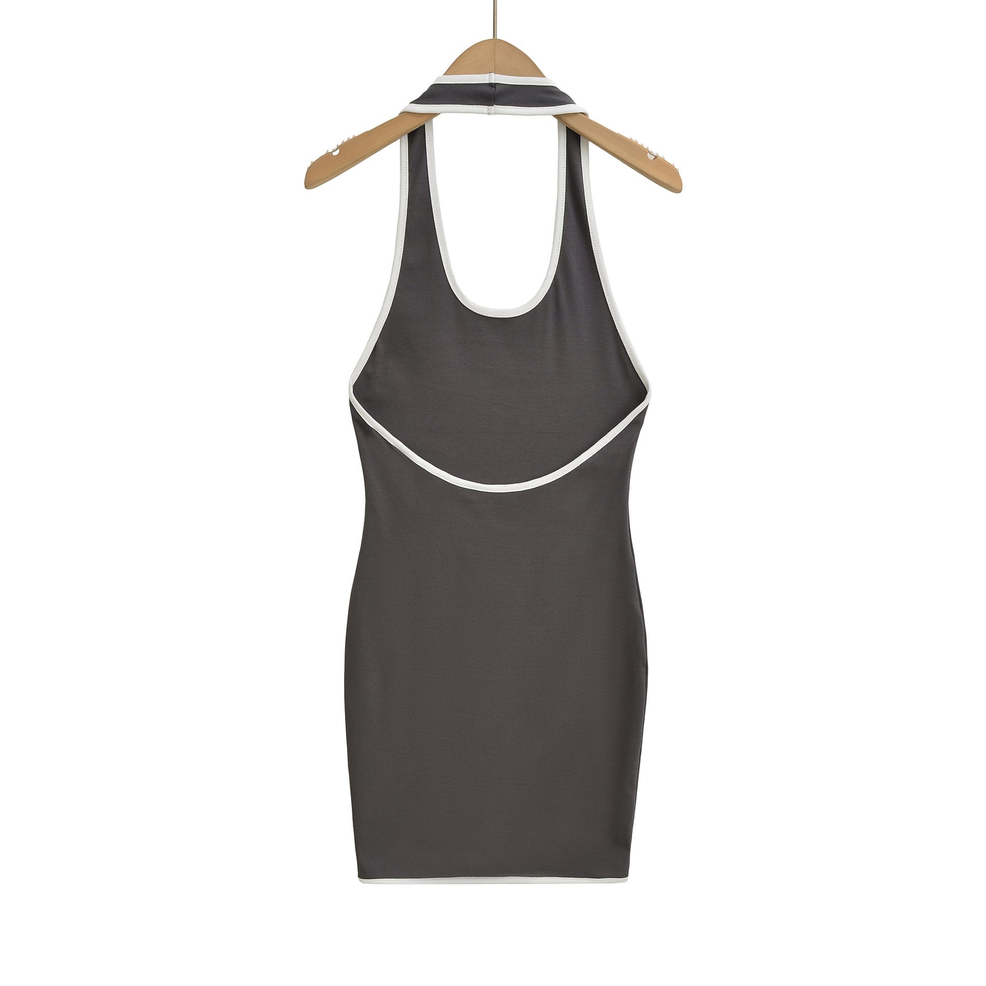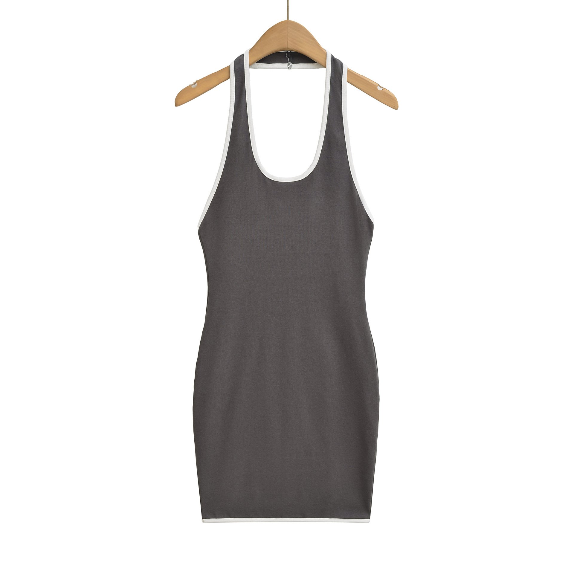 Sexy open back colorblock halter neck hip skirt dress