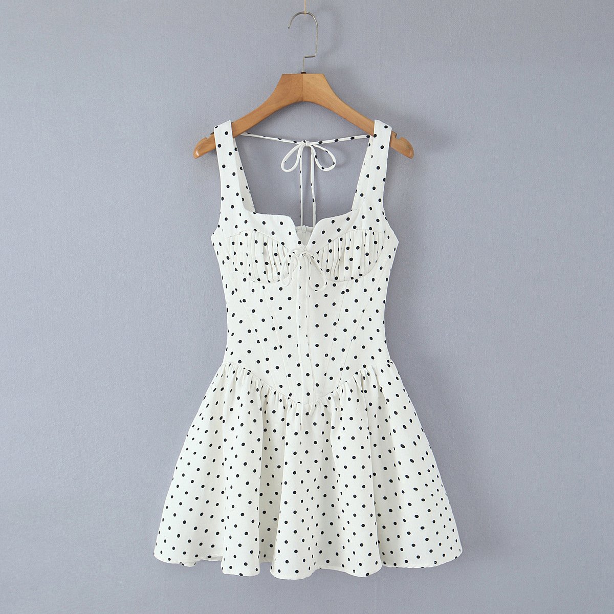 Retro polka dot lace-up princess dress with elastic back