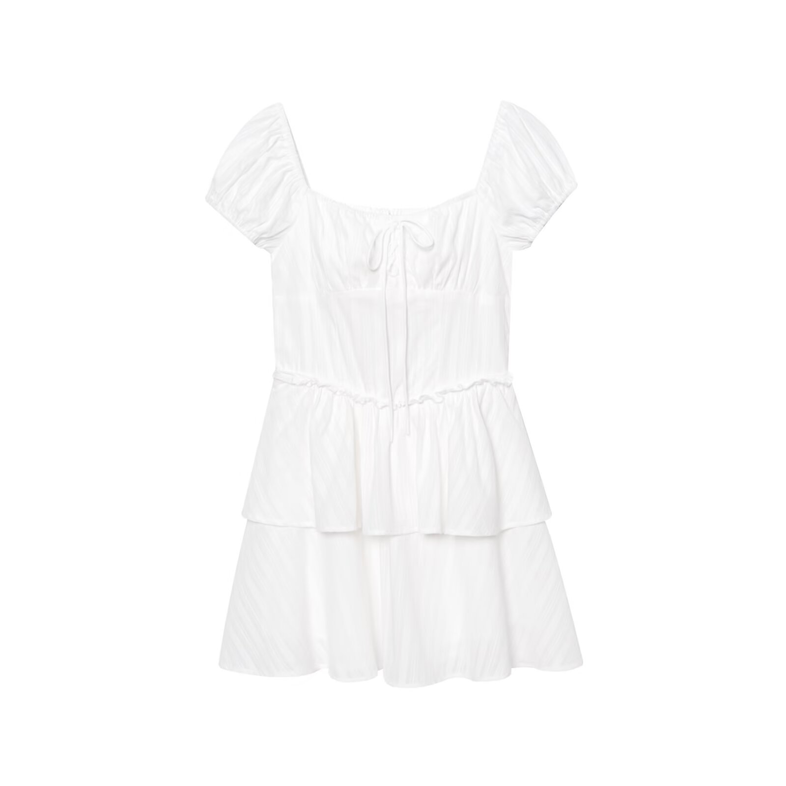 Retro white square neck tie waist ruffle dress