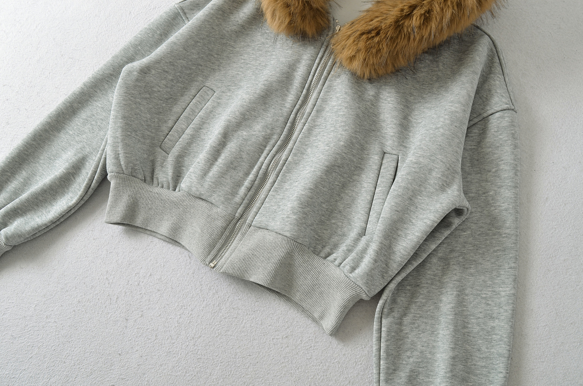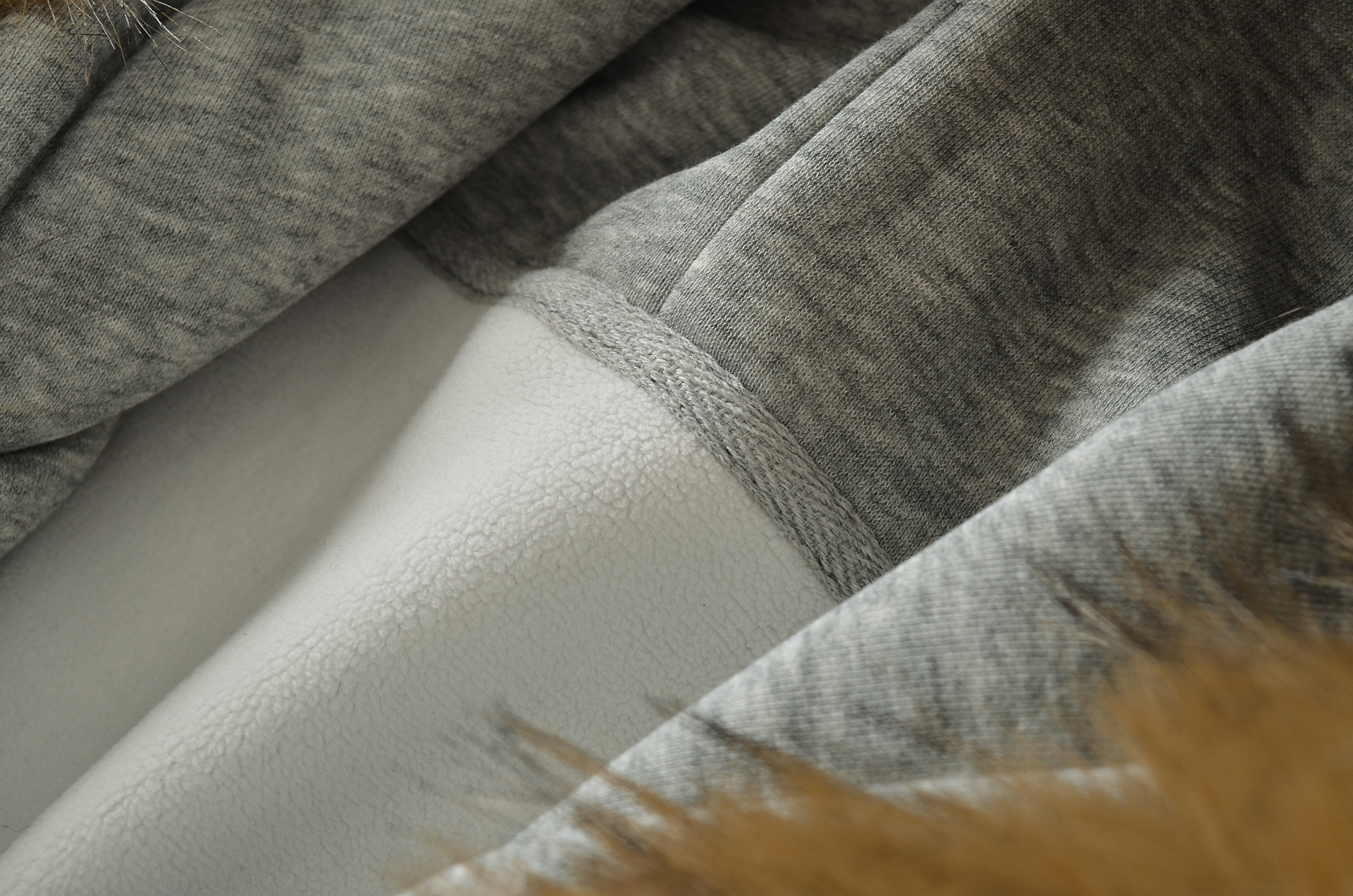 Autumn/Winter Warm Hooded Long-Sleeved Fleece-Lined Jacket/Sweatshirt with Detachable Fur Collar