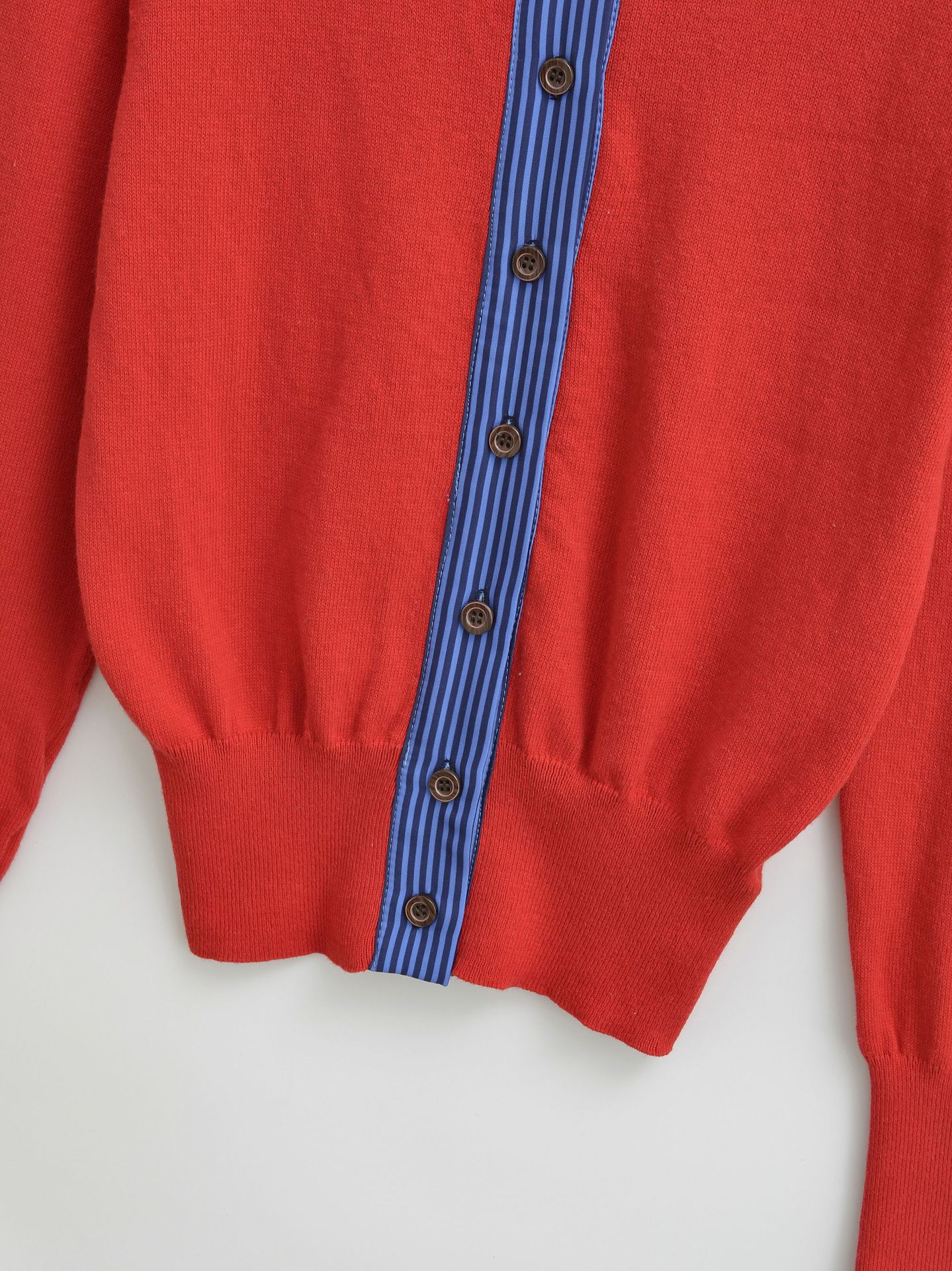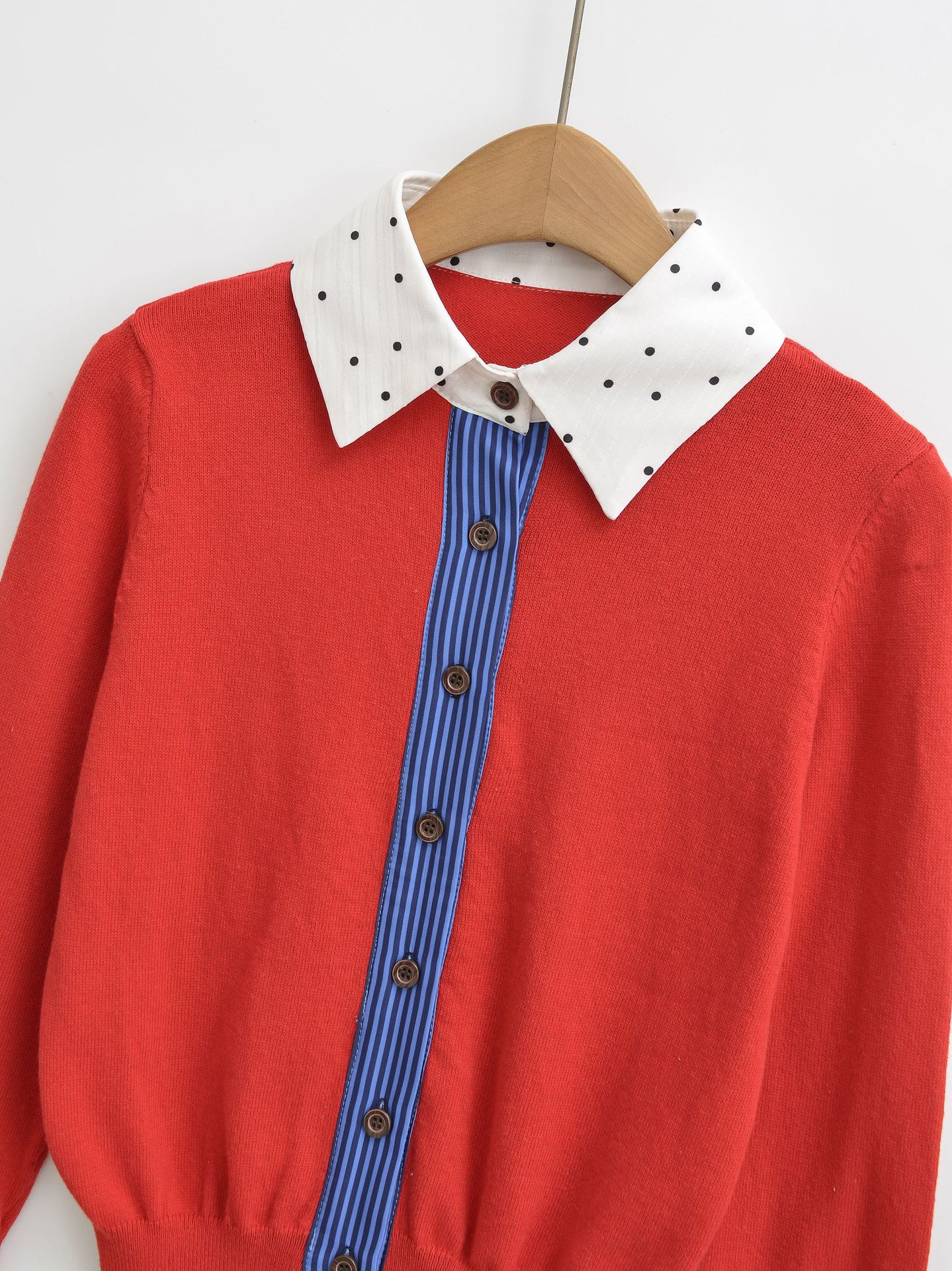 Retro cardigan top fake two-piece stitching embroidered sweater
