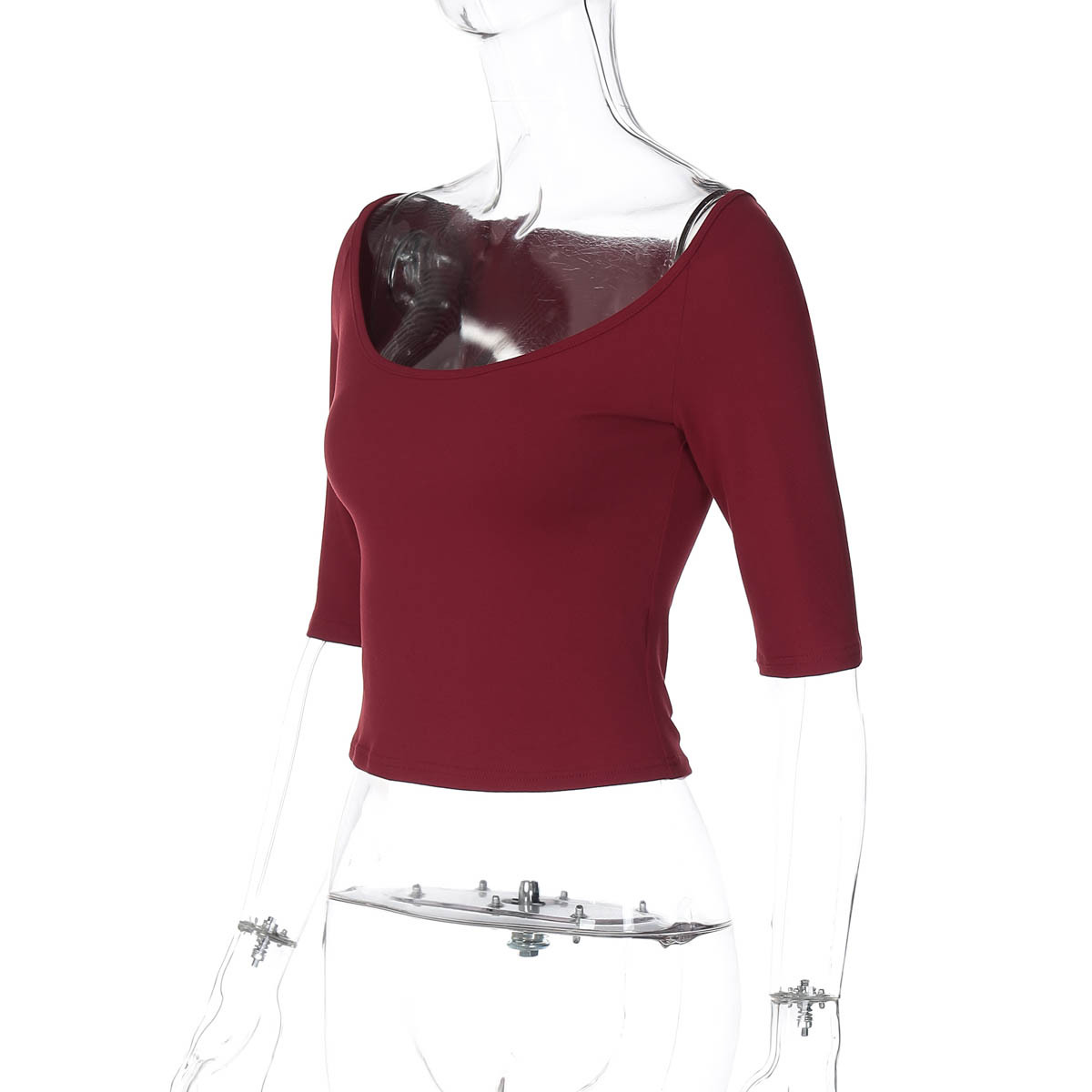 Low-cut U-neck fashion street style solid color slim fit base T-shirt