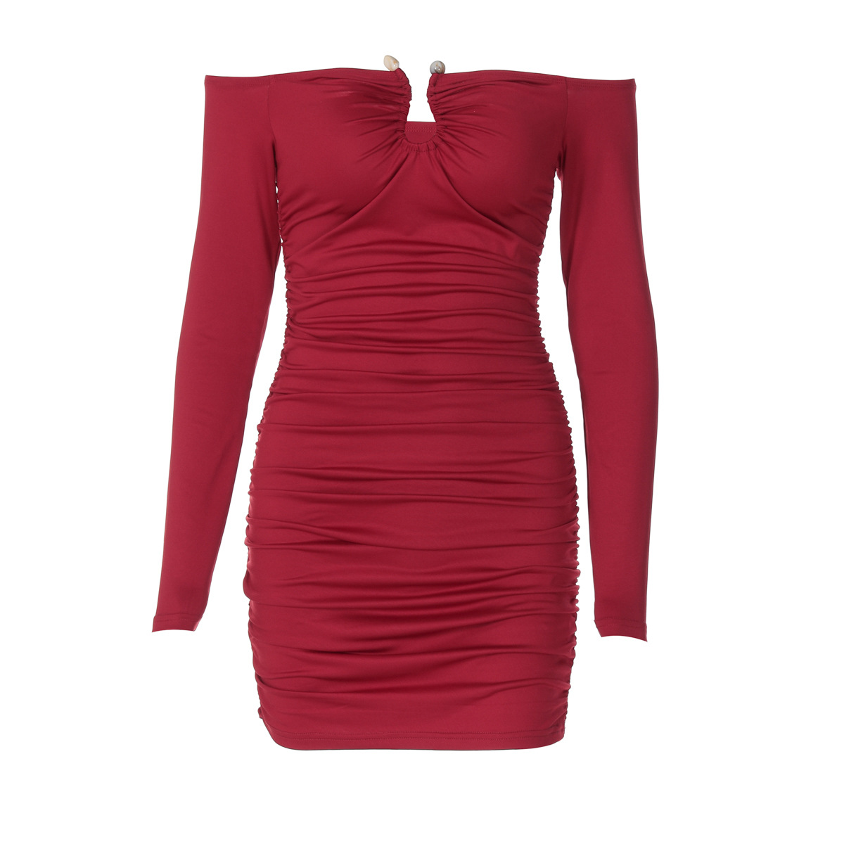 Strapless off-the-shoulder pleated waist slimming bodycon dress