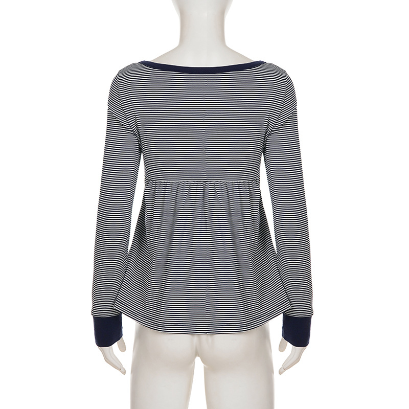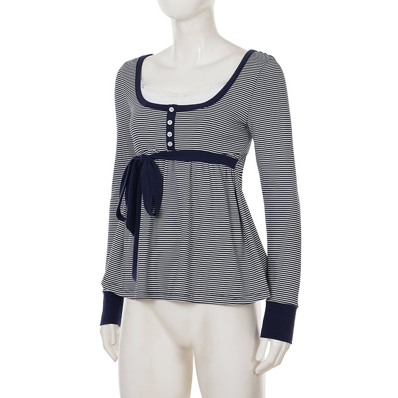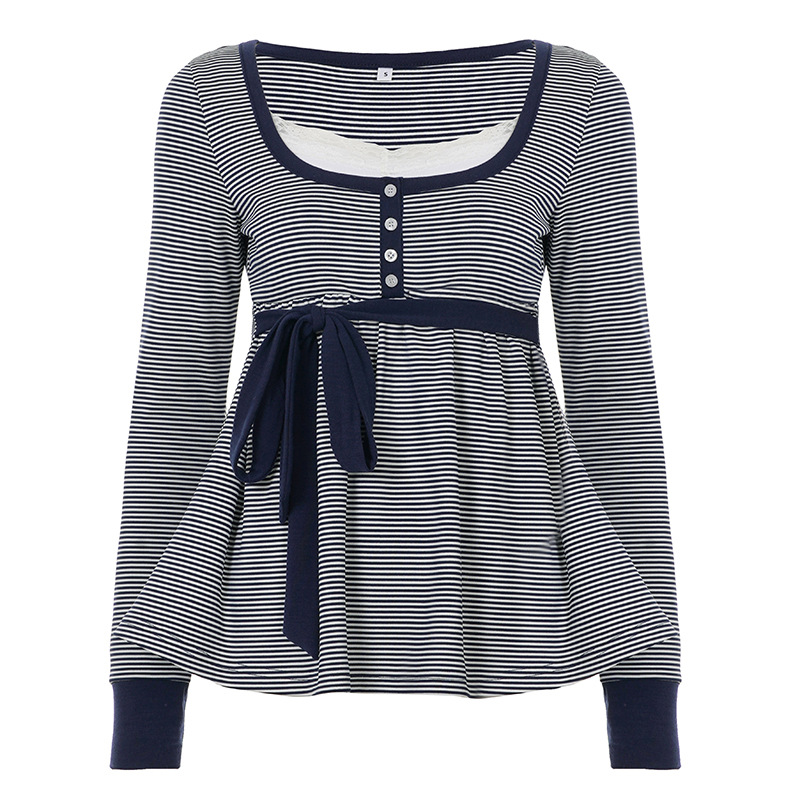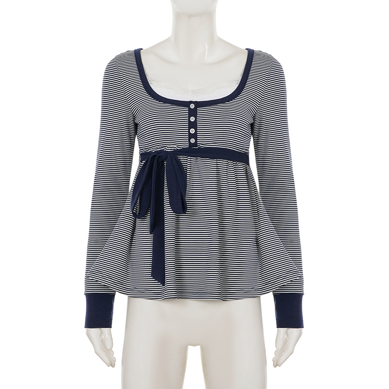 Lace-trimmed striped babydoll top