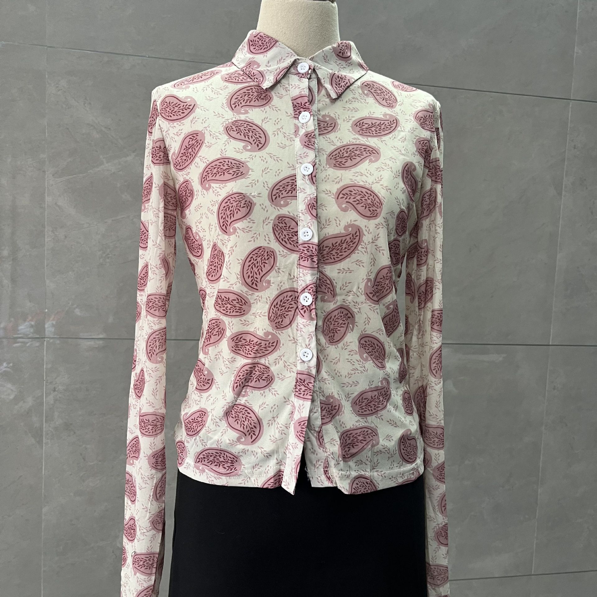 Retro-style slim-fit polo collar long-sleeved shirt