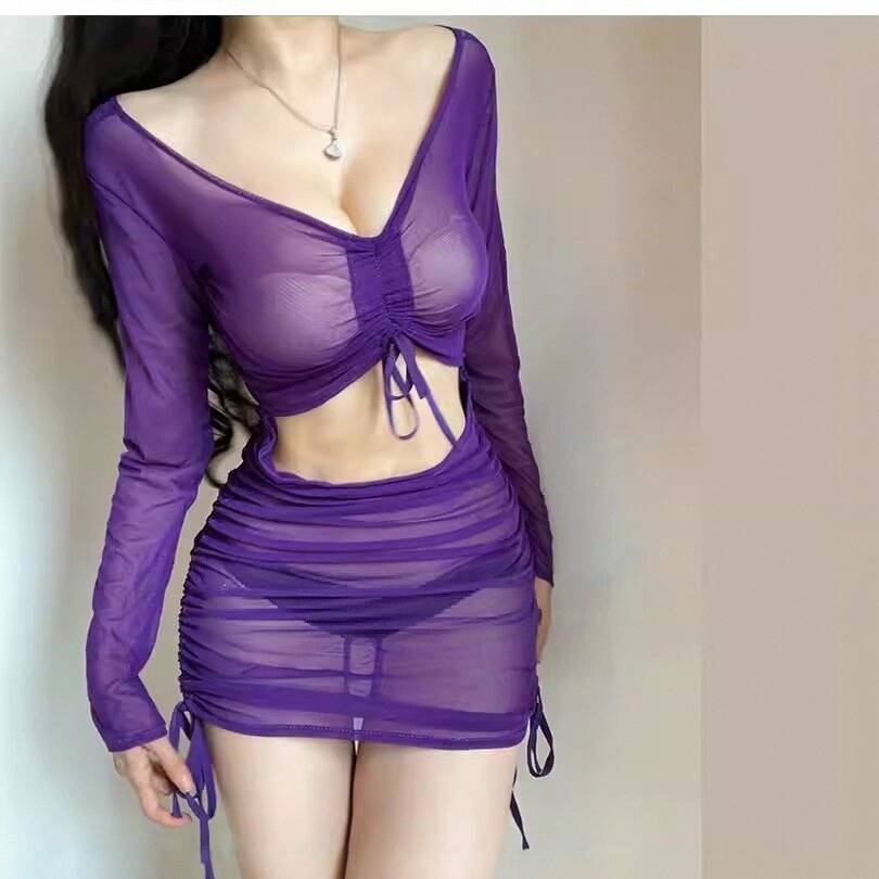 Sheer long-sleeved bodycon dress