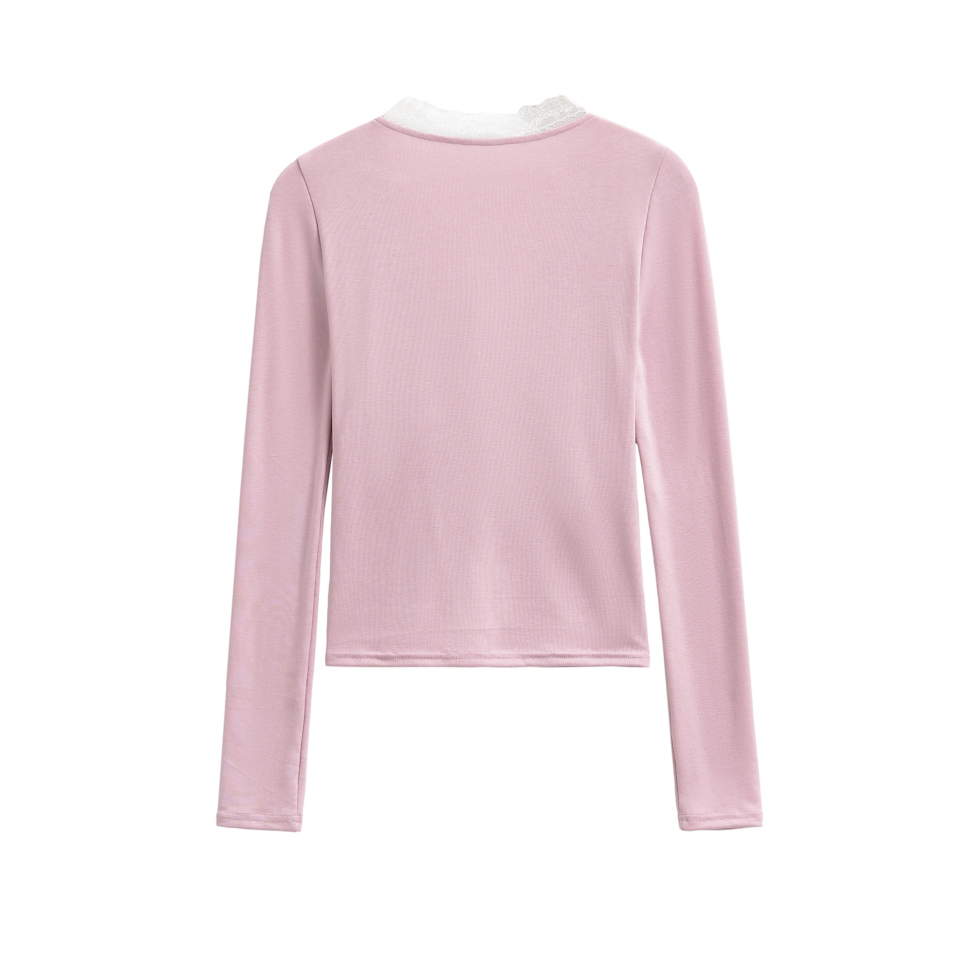 V-neck, knotted lace trim, long-sleeved pullover T-shirt
