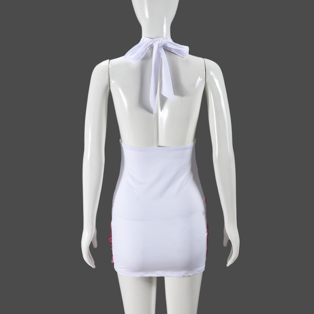 Color-blocked backless V-neck dress with straps