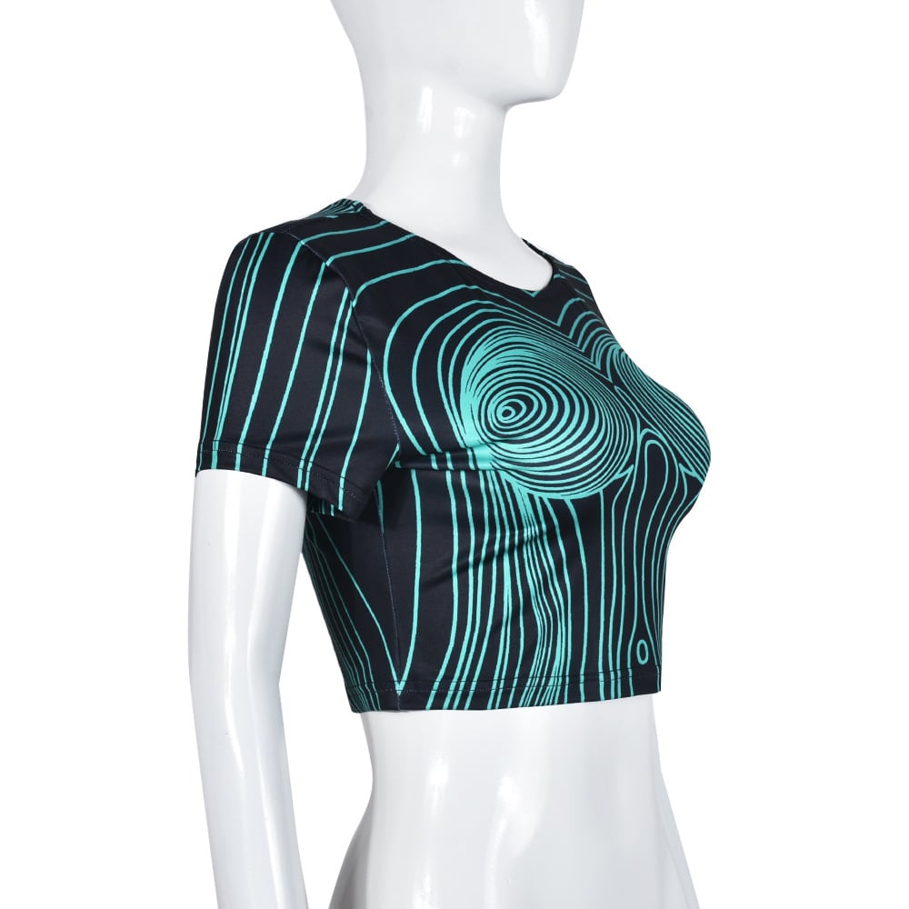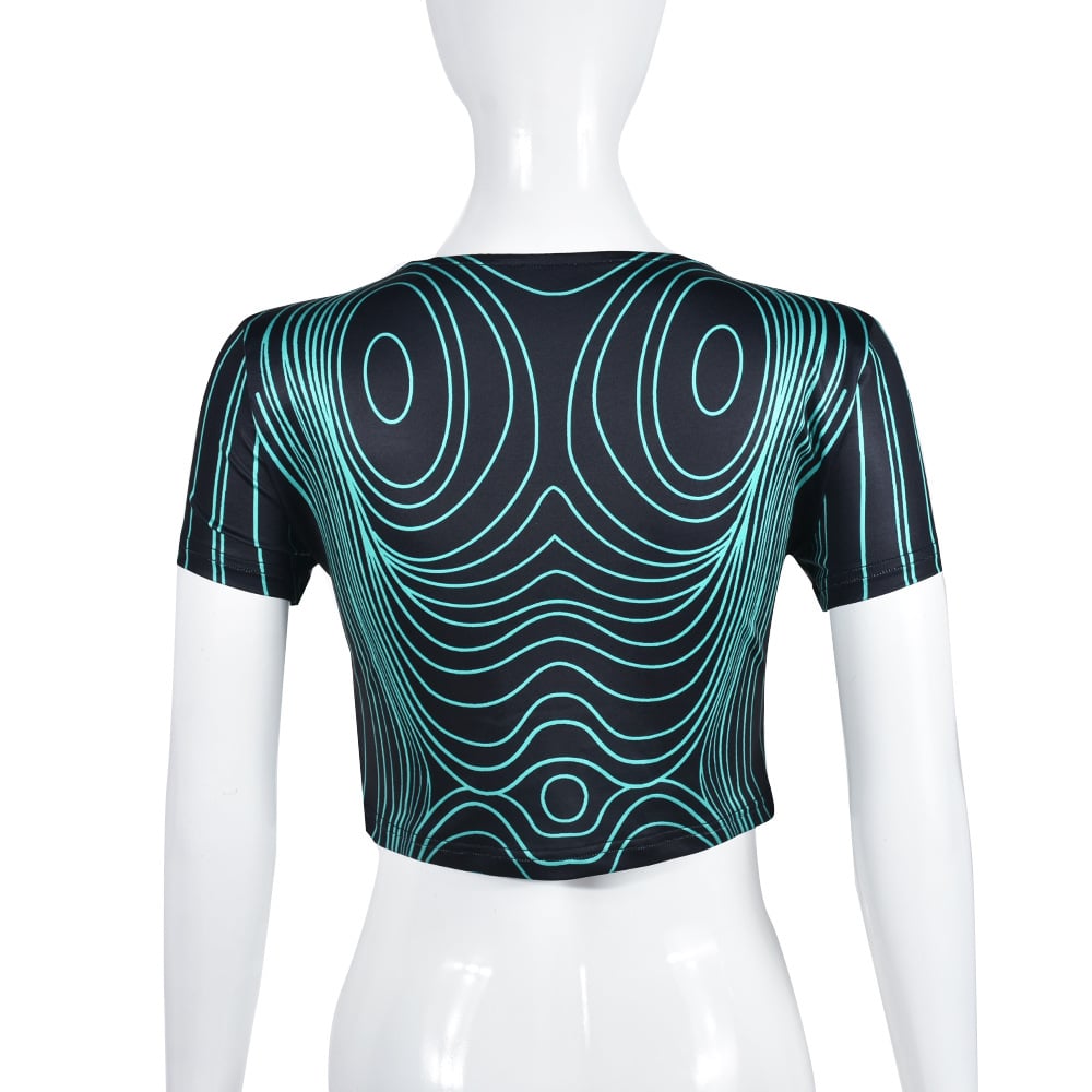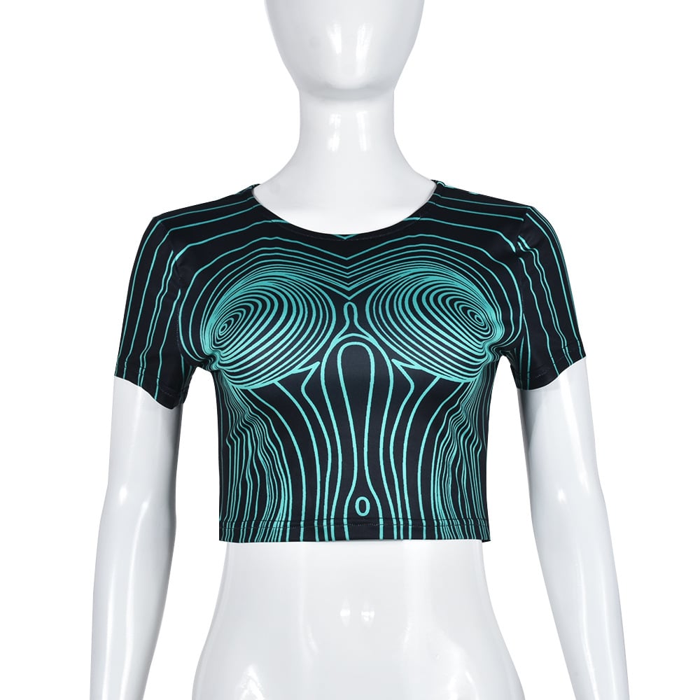 Fashionable and casual round neck long-sleeved sexy cropped printed fitted top
