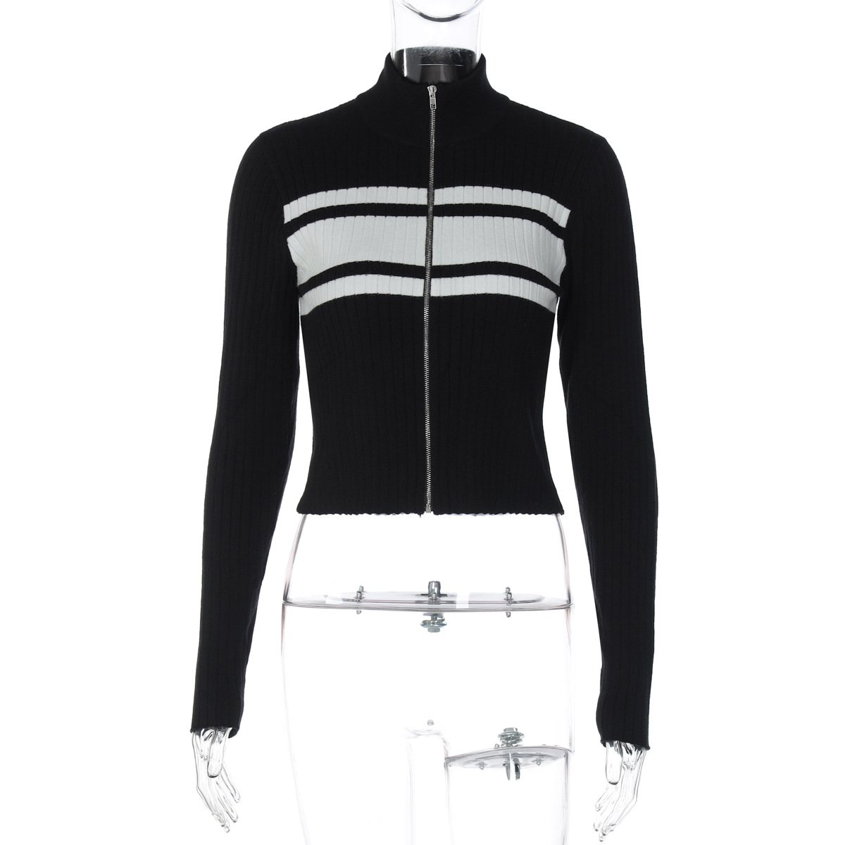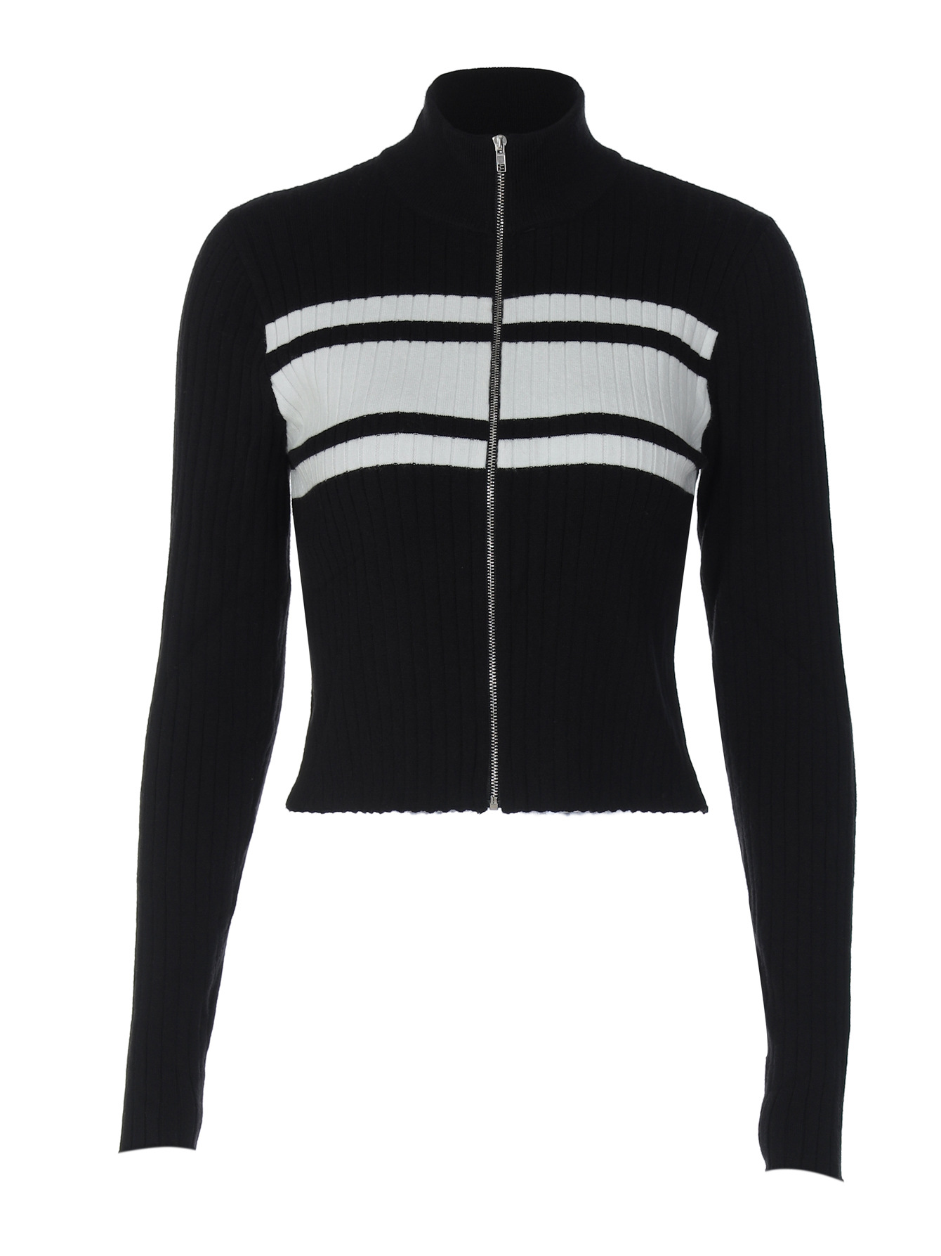 Stylish color-blocked zip-up cardigan top